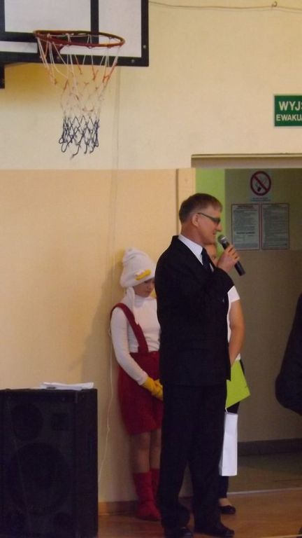 Oliwia Antos, Natalia Sioła, Sebastian Dudziński, Tomasz Gawin uczniowie klasy I"a" i "Koziołek Matałot" - Maja Głowka uczennica klasy VI