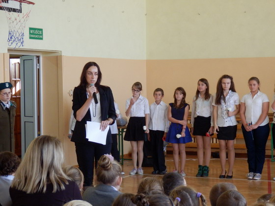 Pani Karolina Salamon wita wszystkich na uroczystym apelu