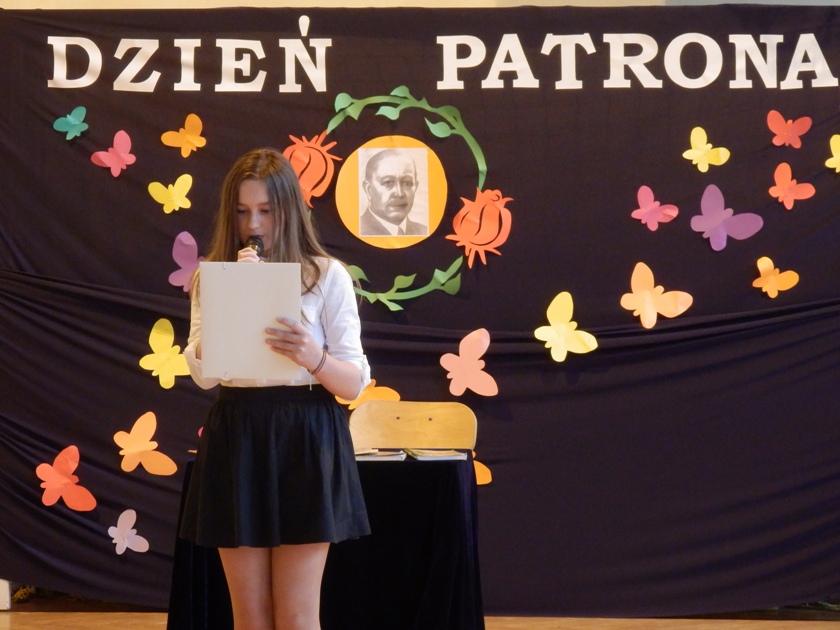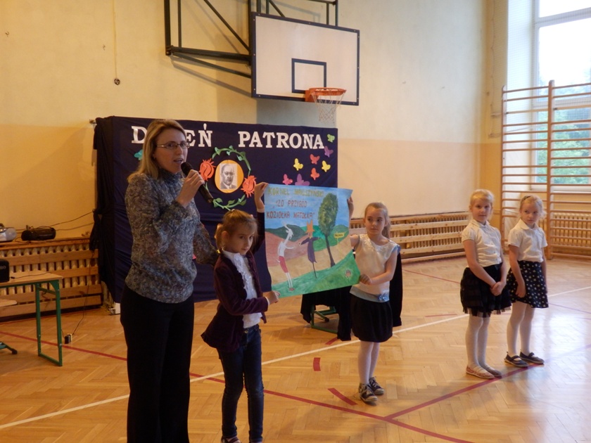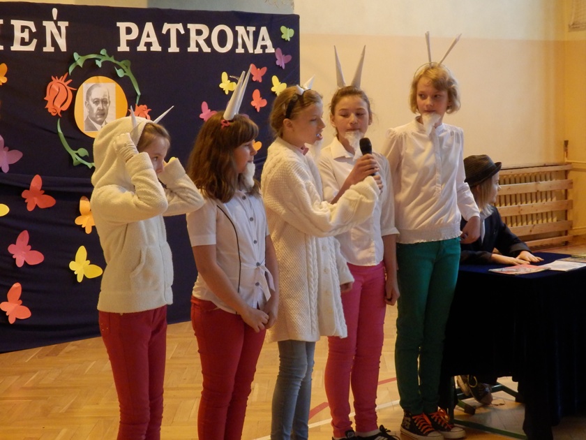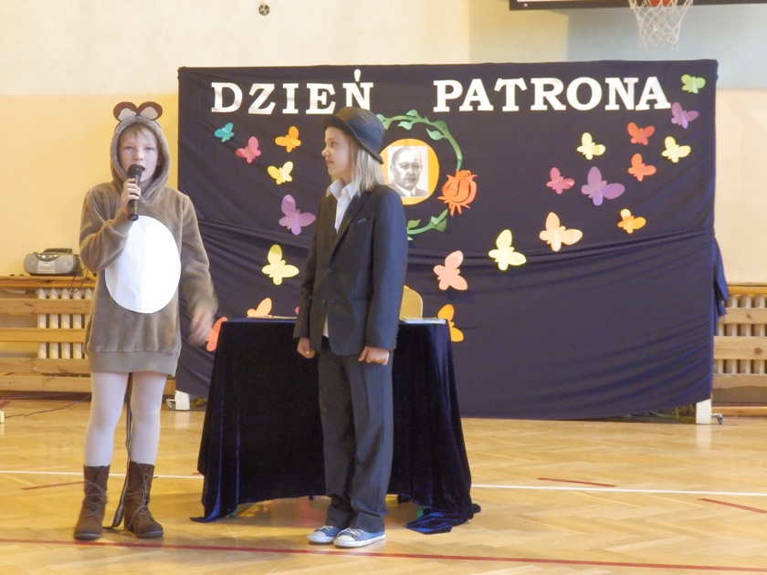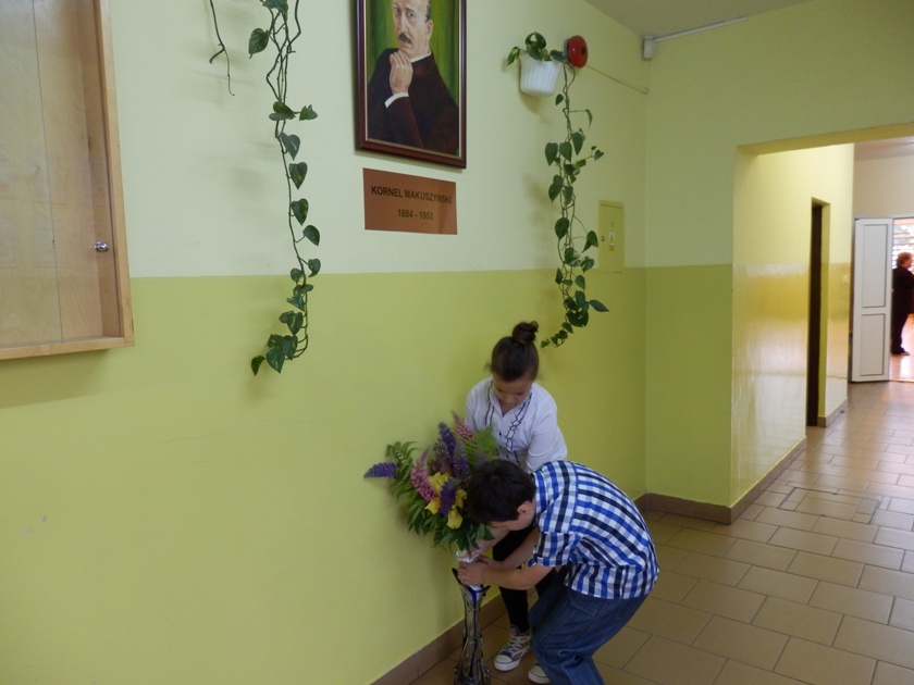Kornel Makuszyński patronuje naszej szkole już od 9 lat. W tym roku obchodom Dnia Patrona przyświecało hasło „Pokochajmy postacie z książek Kornela Makuszyńskiego”. W związku z tym po wprowadzeniu sztandaru, odśpiewaniu hymnu kornelowców, przypomnieniu najważniejszych faktów z życia pisarza oraz złożeniu kwiatów pod tablicą pamiątkową przedstawiciele klas I – III zachęcali do przeczytania wybranych książek patrona. Koło teatralne wprowadziło nas w świat postaci z książek pisarza i zaprezentowało przedstawienie pt. „Z wizytą u Pana Kornela”.
