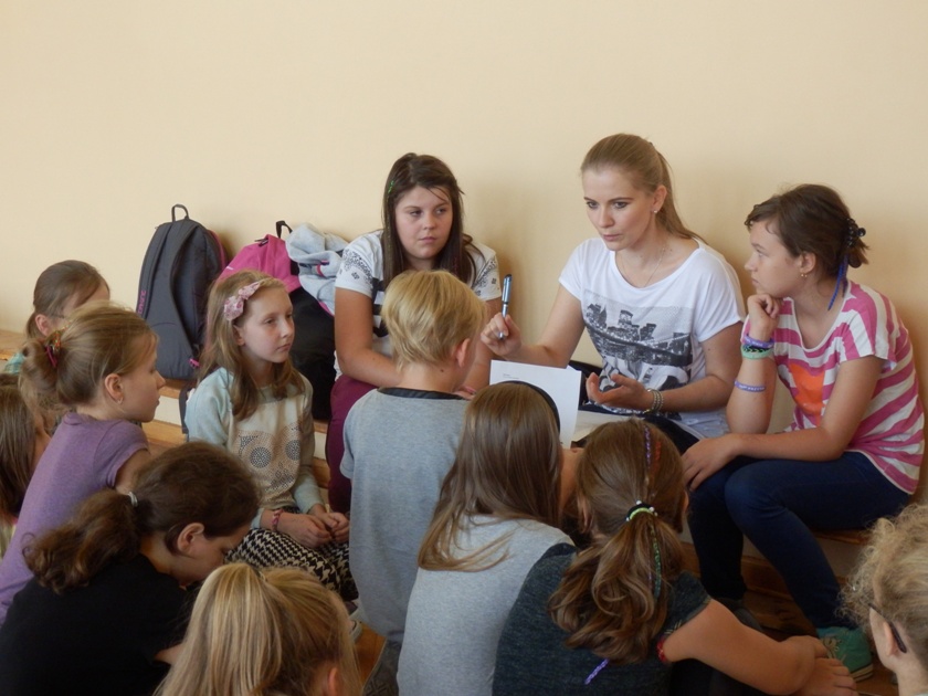 15 września w naszej szkole uczestnicy projektu "Kolorowa Lokomotywa" pilnie pracowali tym razem na warsztatach teatralnych. Warsztaty prowadziła Pani Sylwia Strugińska - solistka Teatru Muzycznego w Łodzi, jak również instruktorka teatralna z Łódzkiego Domu Kultury, która przez zabawę uczyła podstaw występów scenicznych. Były ćwiczenia głosu, dykcji i postawy ciała, jak również praca nad scenariuszem. Wszystkie te wysiłki zaprowadzą nas bez wątpienia do przedstawienia opartego na tekście Juliana Tuwima "Ptasie radio", które będzie zwieńczeniem projektu skierowanego do dzieci z województwa łódzkiego realizowanego przez Łódzki Dom Kultury i dofinansowanego przez WFOŚiGW w Łodzi.