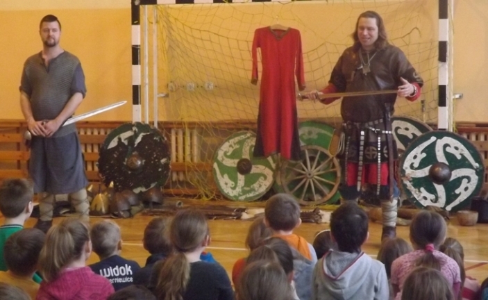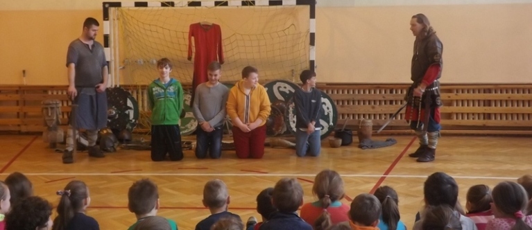 W dniu 26 marca w naszej szkole, wzorem lat ubiegłych, odbył się niezwykły pokaz. Przybyli do nas rycerze i przeprowadzili żywą lekcję historii na temat Polski z czasów Mieszka I i Bolesława Chrobrego. Pokaz oglądali wszyscy uczniowie naszej szkoły. Inscenizacja była ważnym uzupełnieniem lekcji historii i bardzo podobała się uczniom, zwłaszcza, że niektórzy z nich mieli możliwość zmierzyć się z rycerzami.