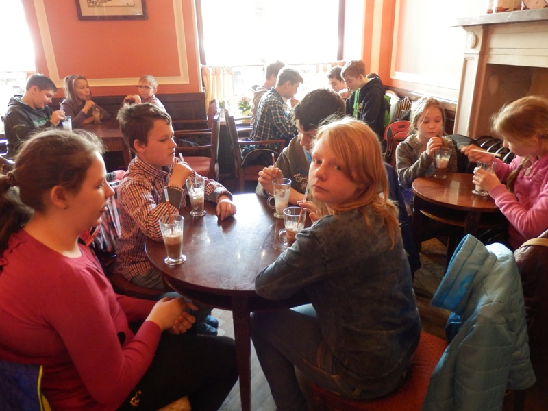 20 kwietnia uczniowie klasy V i VI uczestniczyli w wycieczce do Warszawy. W kinie Ciemna City obejrzeli film pt. „Kopciuszek” inspirowany klasyczną baśnią o tym samym tytule. W najnowszej produkcji Disneya, w reżyserii nominowanego do Oscara Kennetha Branagha. Następnie byli gośćmi Pijalni Czekolady Wedel. Poznali historię firmy i produktów. Mieli szansę własnoręcznie wykonać czekoladowe ozdoby i napisy. Finałowym punktem wizyty była degustacja wyrobów wedlowskich. Dzieci otrzymały pożegnalne upominki. Na koniec pobytu w Warszawie udało się nam uczcić pamięć poległych żołnierzy na Grobie Nieznanego Żołnierza. To był niezapomniany, emocjonujący oraz pełen pozytywnych wrażeń dzień zakończony wizytą w restauracji Mc' Donald.