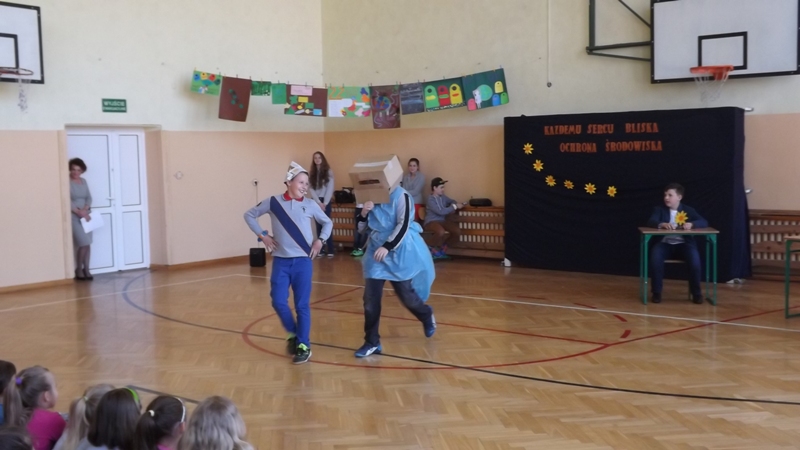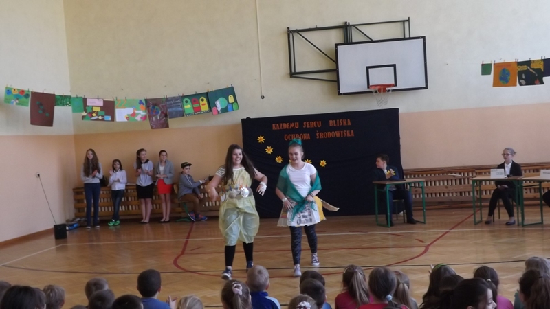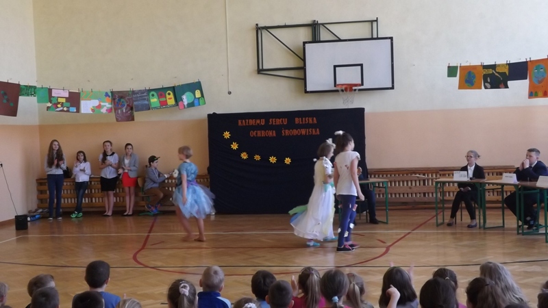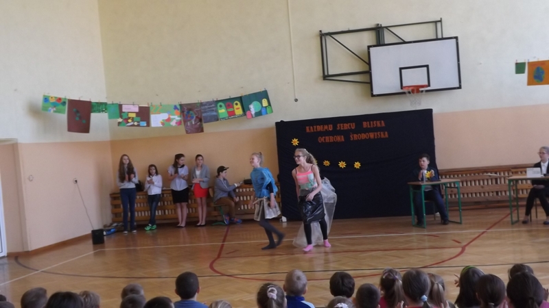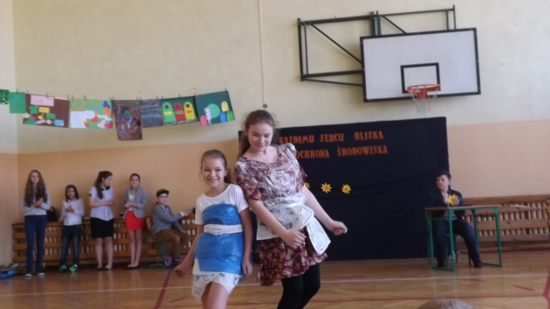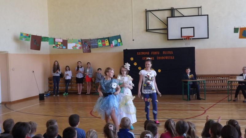 Dni Ziemi obchodzone 22 kwietnia to czas, kiedy ludzie na całym świecie łączą siły, aby uświadomić wszystkim, że wspaniałe dary przyrody trzeba wykorzystywać mądrze - tak, aby starczyło ich dla przyszłych pokoleń. Główną atrakcją tegorocznych obchodów Dnia Ziemi w naszej szkole, był pokaz mody ekologicznej zaprezentowany przez uczniów klasy V i VI pod kierunkiem pani Zuzanny Dudziak. Wszystkie stroje wykonane były z materiałów podlegających recyklingu m.in. folii, papieru, gazet, opakowań, , tektury, torebek foliowych i papierowych, butelek plastikowych, nakrętek, zużytych płyt CD. Stroje bardzo się spodobały zgromadzonej w sali publiczności.