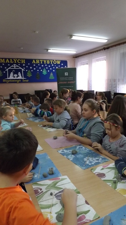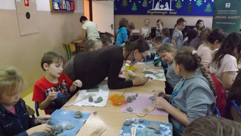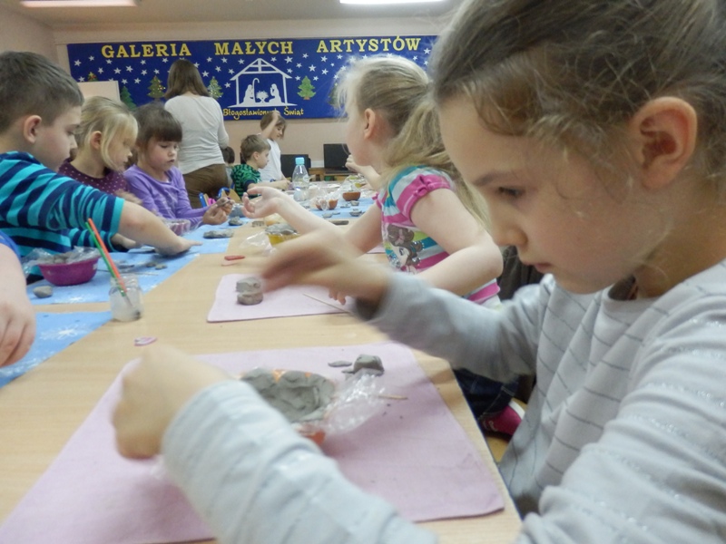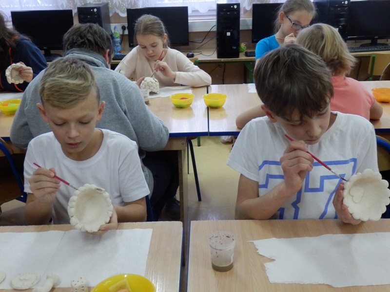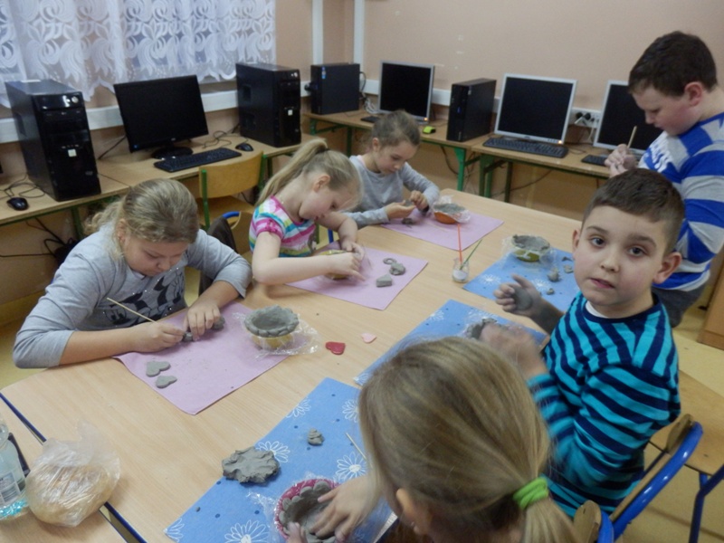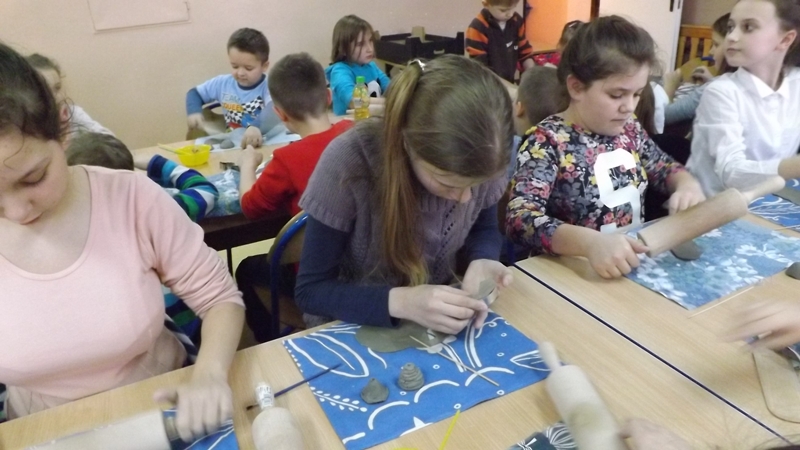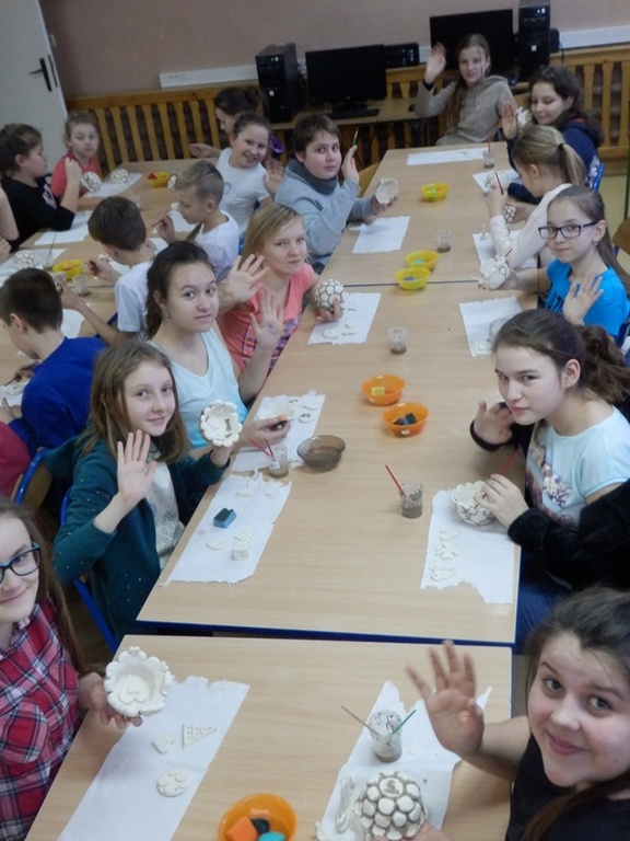 Pod koniec stycznia w naszej szkole odbyły się warsztaty ceramiczne. W zajęciach brali udział uczniowie z klas I - VI. Uczniowie poznali właściwości i proces technologiczny od gliny do pięknego przedmiotu użytkowego. Wykonano biżuterię, miski, dzwonki. Zajęcia były formą kreatywnej zabawy i twórczego spędzania czasu dodatkowo sprawiły dzieciom ogromną radość.