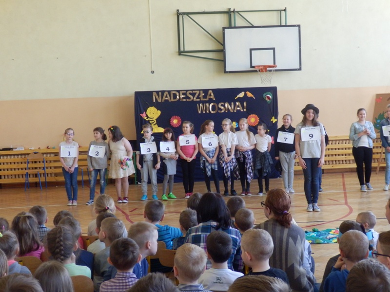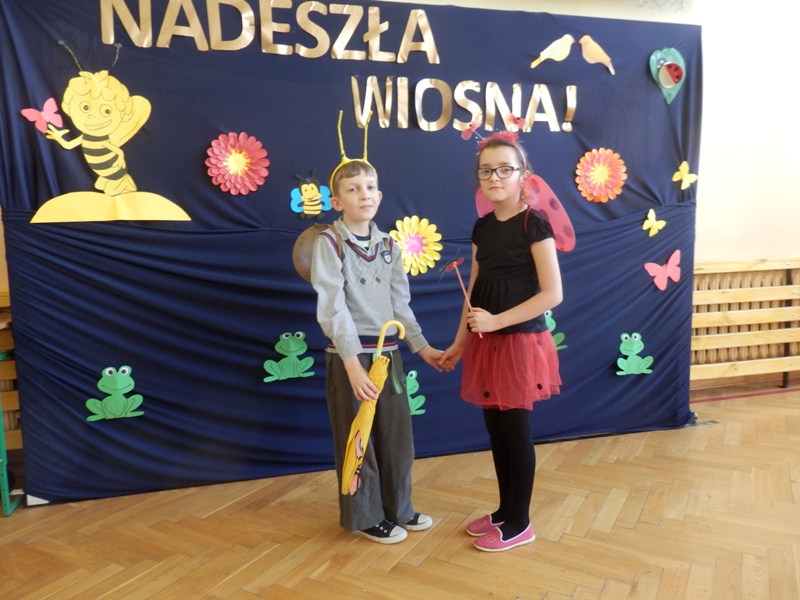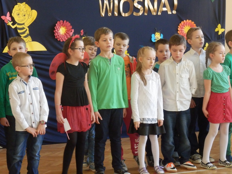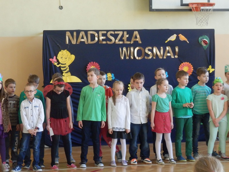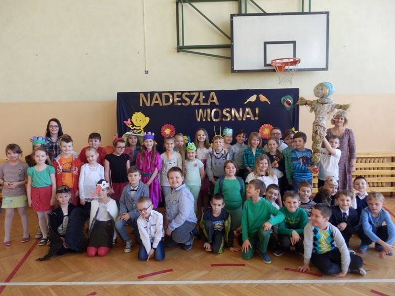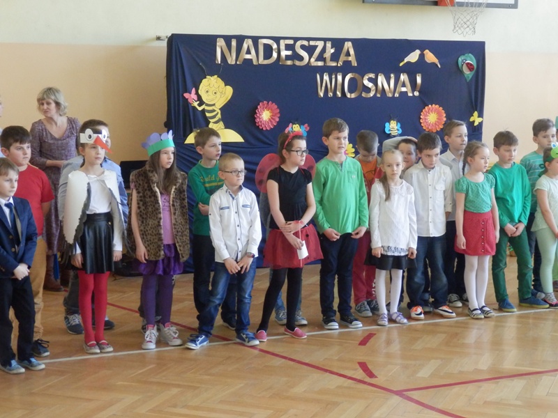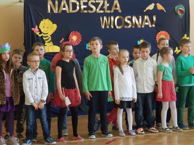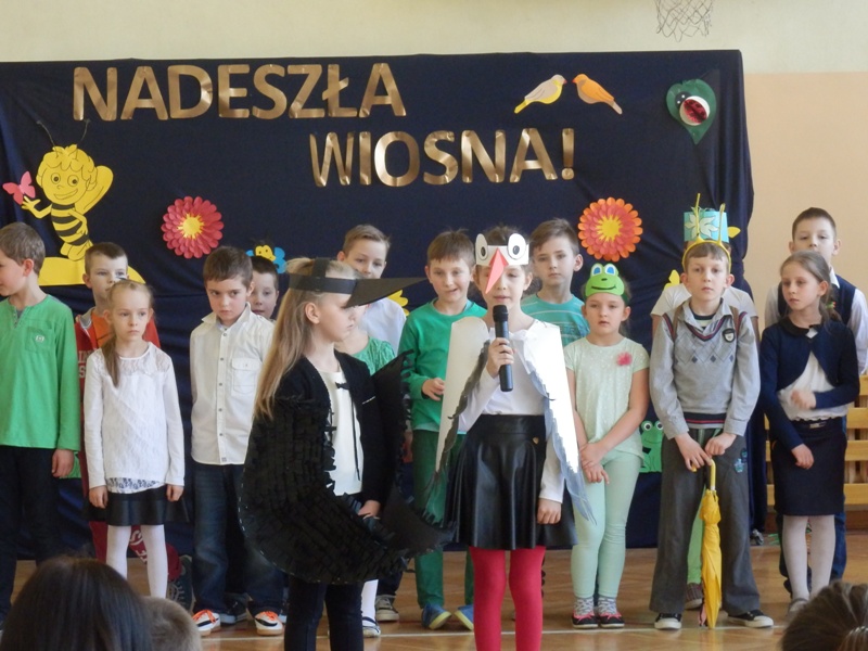21 marca 2016 roku w naszej szkole odbyło się świętowanie Pierwszego Dnia Wiosny. Klasy II wystawiły sztukę pt: ,, Nadeszła Wiosna". Młodzi aktorzy byli przebrani za różno kolorowe postaci między innymi: zwierzęta leśne oraz rośliny. Scena również zapierała dech w piersiach. Krajobraz idealnie odzwierciedlał wiosnę. Całość świetnie pasowała do siebie. Przedstawienie wywołało aplauz wśród widzów co spodobało się dzieciom. Nie obyło się bez gratulacji i uśmiechów na twarzach artystów. Naszym zdaniem ten dzień na długo pozostanie w pamięci.