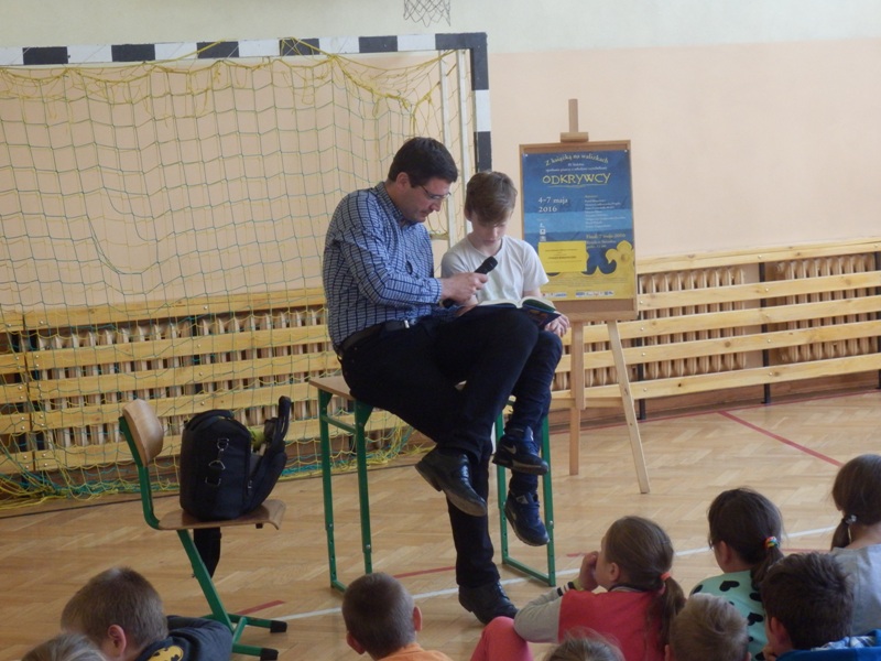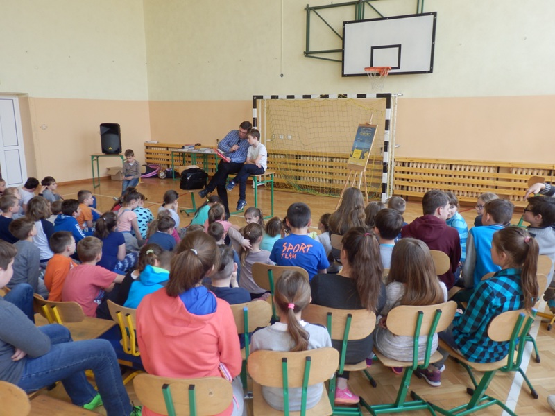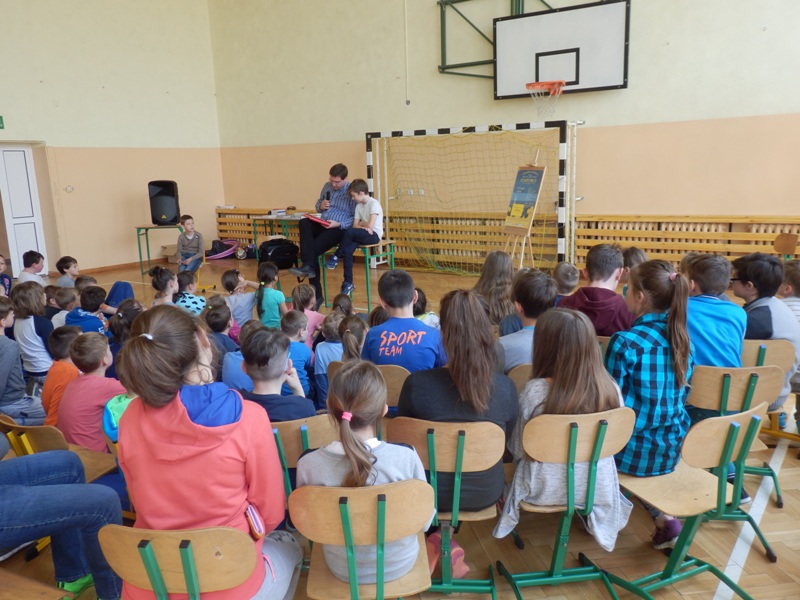 „Z książką na walizkach” to akcja promująca czytelnictwo wśród dzieci, w bibliotekach miejskich i gminnych. Dla uczniów jest to kontakt z autorem książek i niepowtarzalna okazja na uzyskanie unikatowej dedykacji. Naszą szkołę odwiedził pisarz Paweł Beręsewicz, który w ciekawy sposób opowiedział w jaki sposób powstawały jego książki.