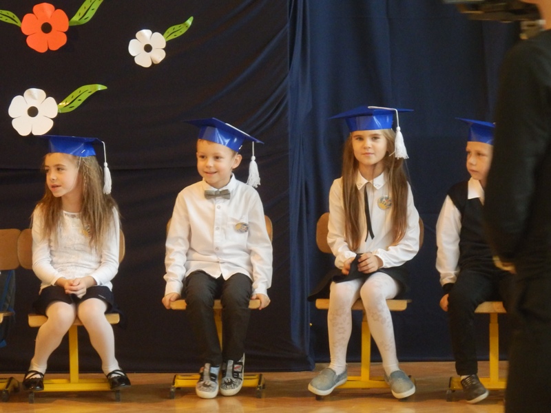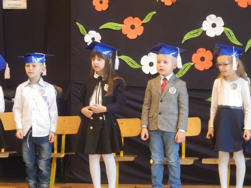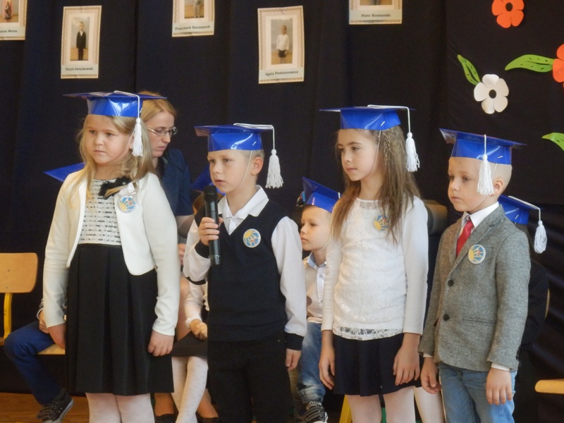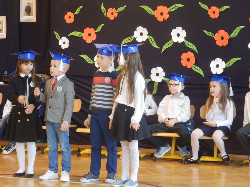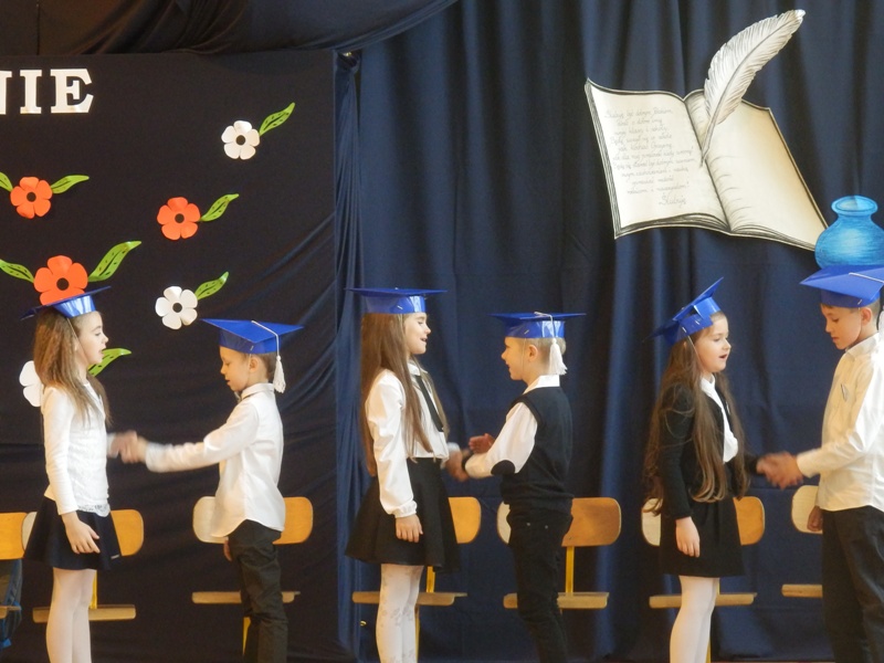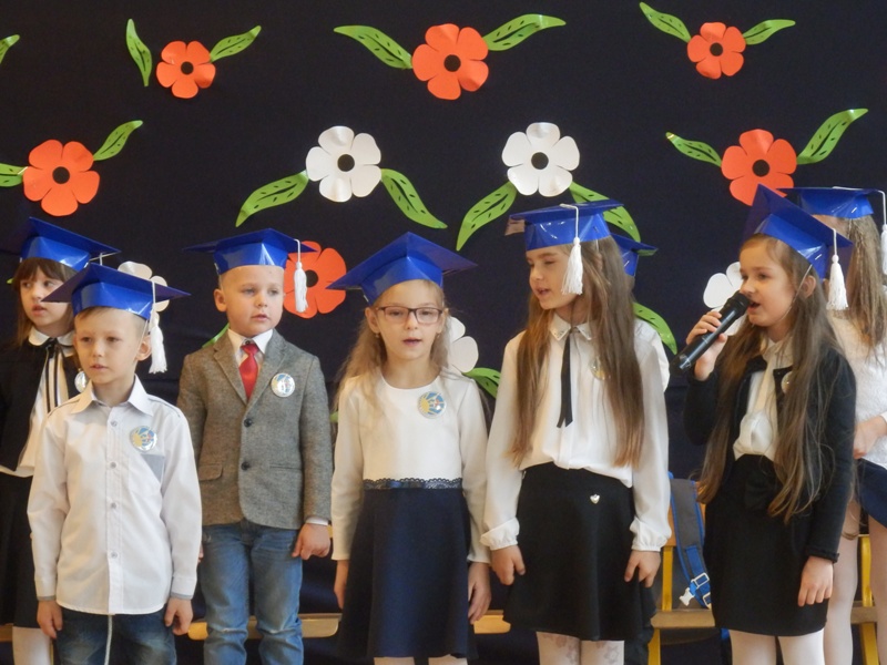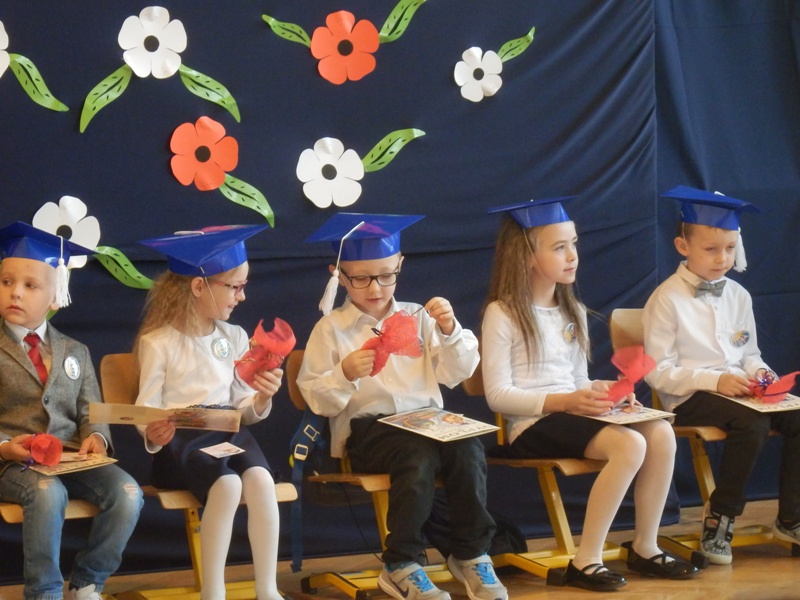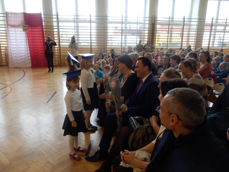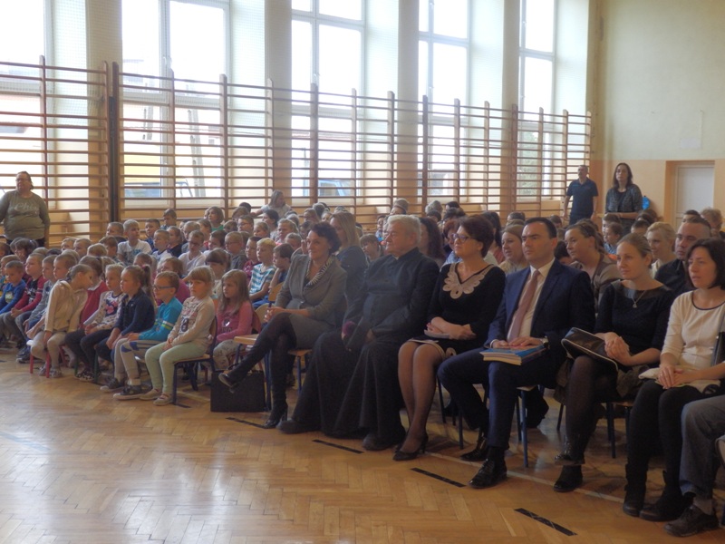 Na początku dzieci przedstawiły przygotowany pod kierunkiem wychowawczyni pani Agnieszki Szkopińskiej – Wójcik program artystyczny, na który złożyły się wiersze i piosenki dotyczące szkoły, zasad ruchu drogowego, wiadomości o Polsce i przyrodzie. Za swój występ otrzymały gromkie brawa.