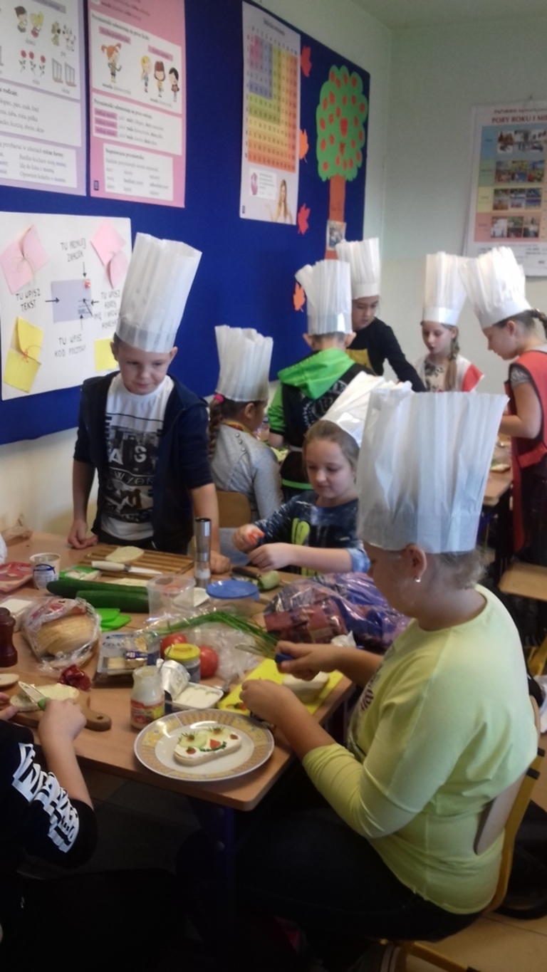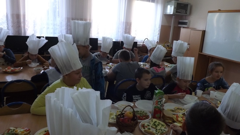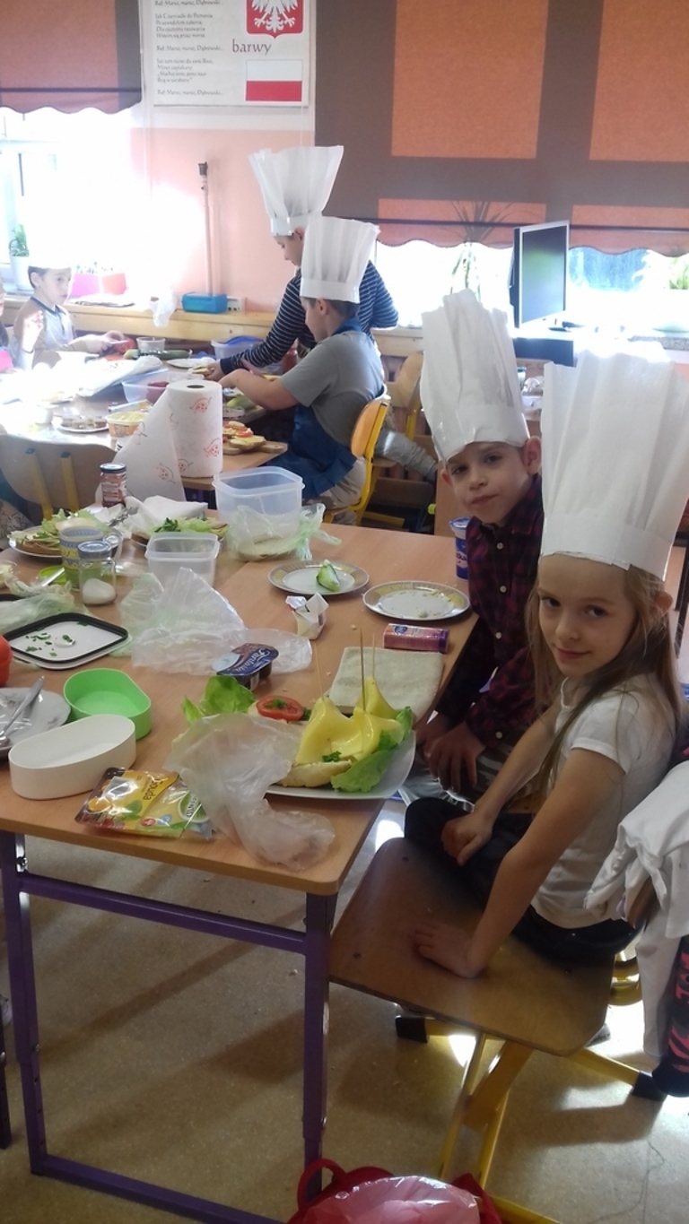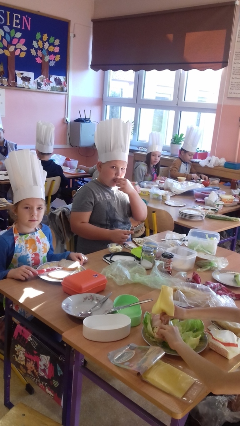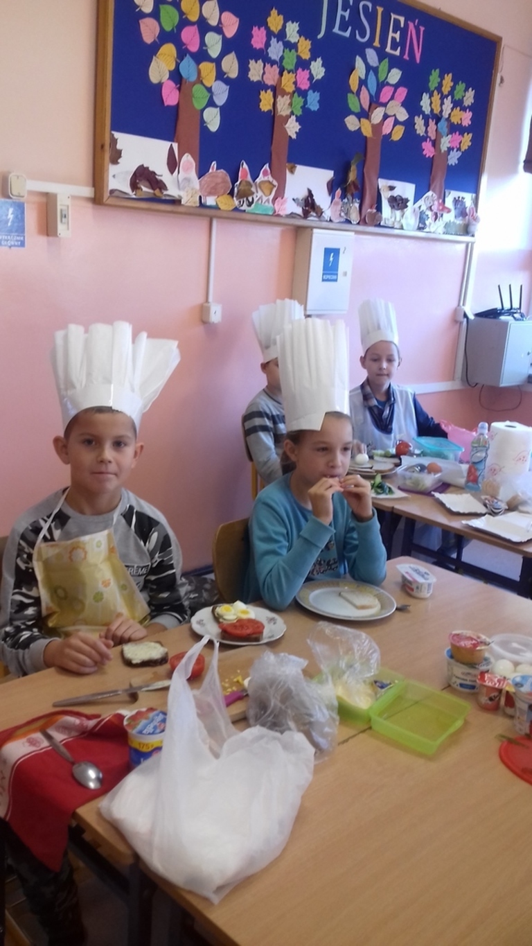Wcześniej przeprowadzono w klasach pogadanki na temat roli śniadania, jako najważniejszego posiłku w ciągu dnia. Uczniowie poznali 12 zasad zdrowego odżywiania. Ważne jest , by jeść pięć posiłków w ciągu dnia o stałych porach i bez pośpiechu, systematycznie sięgać po nabiał, ryby, chleb zamiast bułek, a także picie wody czy soków, zamiast szkodliwych napojów gazowanych.