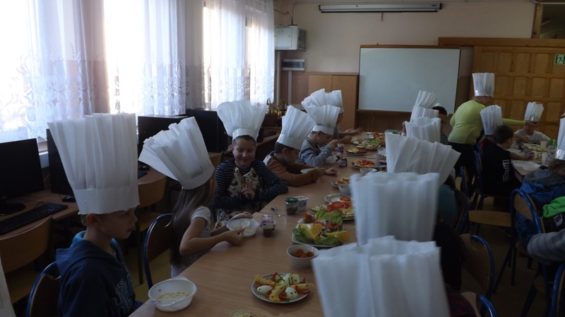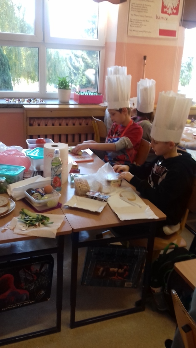 Aby zwiększyć świadomość uczniów na temat roli zdrowego odżywiania klasy trzecie pod kierunkiem p. D. Wacławek i p. K. Szczechowicz 8 listopada włączyły się do ogólnopolskiej akcji edukacyjnej pt.: „Śniadanie daje moc” organizowanej w ramach Europejskiego Dnia Zdrowego Jedzenia i Gotowania. Uczniowie w zrobionych przez siebie czapkach kucharskich, najpierw przygotowali, a potem wspólnie spożywali drugie śniadanie. Wszyscy jedli jogurty i płatki z mlekiem. Można było posmakować płatków owsianych, jęczmiennych, żytnich, gryczanych i kukurydzianych. Na stolikach znalazły się również własnoręcznie wykonane kolorowe kanapki, rożnego rodzaju sery, orzechy, suszone owoce. Nie zabrakło również soków. Dla wszystkich uczniów ze szkoły przygotowane były kosze z owocami, którymi uczniowie chętnie częstowali się w czasie przerw.