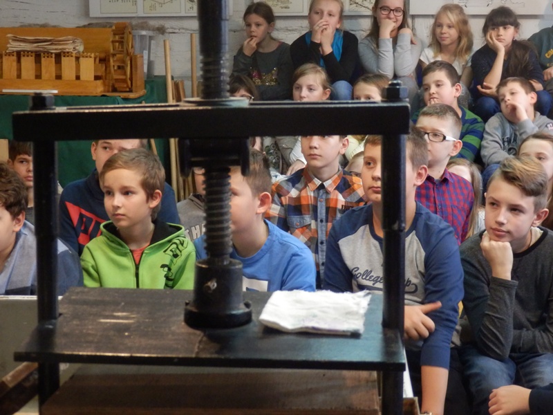 W środę 23 listopada uczniowie klas IV – VI wraz z wychowawczyniami wybrali się na wycieczkę do Łodzi. Młodzież obejrzała najpierw nowoczesną sztukę w teatrze Arlekin pt. „W pogoni za..” Nasi uczniowie przenieśli się w świat maleńkiej jętki (latającego owada), która zaraz po tym jak przychodzi na świat, dowiaduje się, że jej życie trwa tylko jeden dzień… I w ciągu tego jednego dnia z całych swoich maleńkich sił zrobi wszystko, by jak najpełniej je przeżyć. Następnym punktem wyjazdu było Muzeum Papieru i Druku. W czasie zajęć warsztatowych uczniowie poznali historię książki, piśmiennictwa i druku. Własnoręcznie wykonali papier metodą czerpania. Ostatnim punktem wycieczki był wspólny posiłek w restauracji w Manufakturze.
