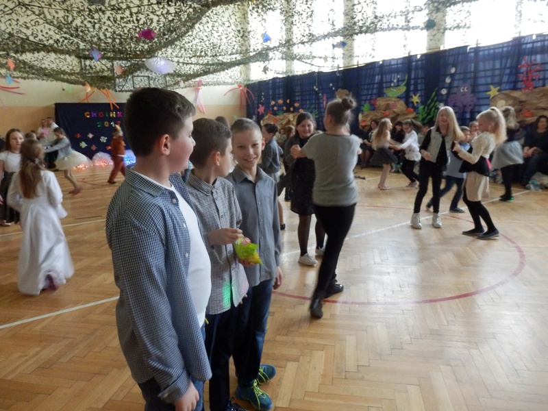 Jak co roku w karnawale odbywa się w naszej szkole „Choinka”. W sobotę 5 lutego uczniowie klas 0 – VI bawili się w rytm muzyki, którą zapewnił animator. Podczas trwania zabawy odbyły się również konkursy, które dały dzieciom wiele radości i satysfakcji. Powodzeniem cieszyły się tańce w parach, mniejszych grupkach czy też zabawy taneczne takie jak „kankan”, „zorba”. W salach rodzice przygotowali słodki poczęstunek. Uwieńczeniem zabawy był "Mikołaj", który przybył z dużym workiem pełnym prezentów. Atmosfera panująca na choince na długo pozostanie w pamięci naszych uczniów.