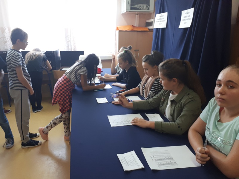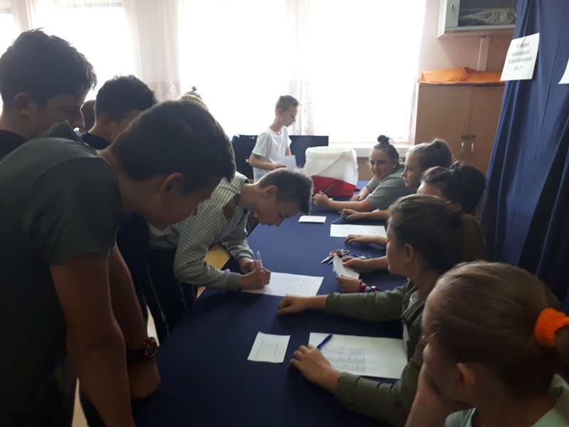 29 września w naszej szkole odbyły się wybory do Samorządu Uczniowskiego. Każdy uczeń mógł oddać jeden głos na wybranego kandydata. Kandydatami byli uczniowie z klas IV – VI. Wybory, jak co roku zostały przeprowadzone zgodnie z zasadami demokracji. W dniu głosowania na trzeciej godzinie lekcyjnej przedstawiciele komisji wyborczej zbierali głosy do urny. Skład Samorządu Uczniowskiego w tym roku szkolnym to: