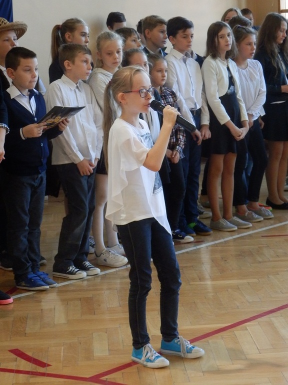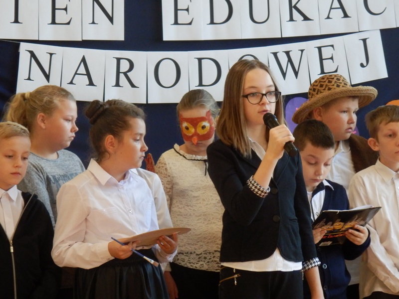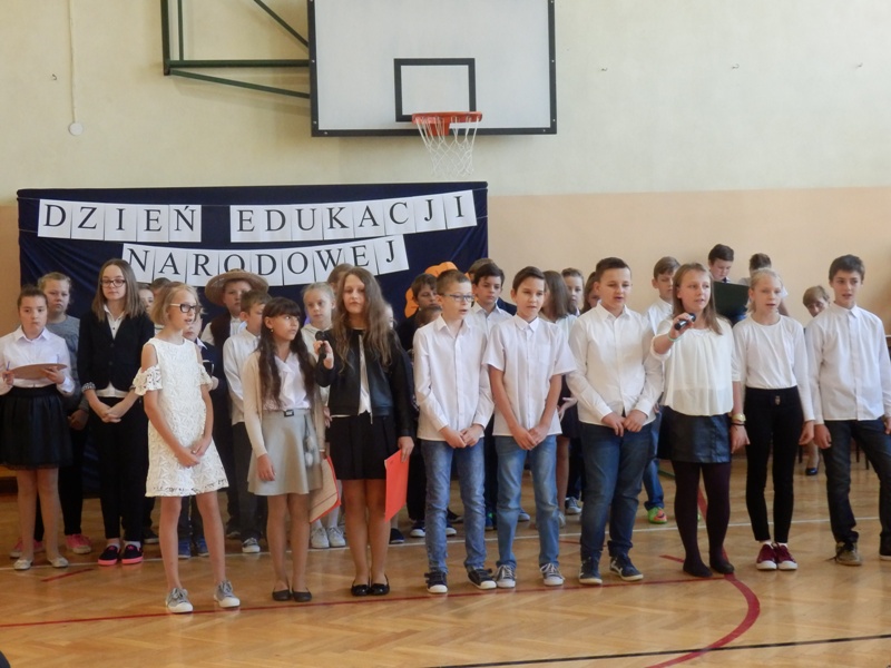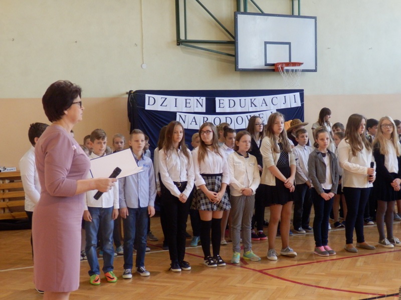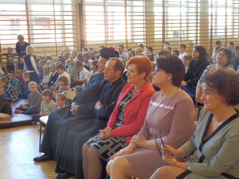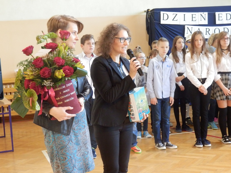 13 października społeczność naszej szkoły zebrała się w sali gimnastycznej, by wspólnie świętować Dzień Edukacji Narodowej. Słowno - muzyczną część artystyczną przygotowali uczniowie klas IV a i IV b pod kierunkiem pań: Ireny Stańczak i Sylwii Sas. Życzenia wszystkim pracownikom szkoły złożyła pani dyrektor Lidia Wiedeńska, która wręczyła Nagrodę Dyrektora: pani Renacie Szymańskiej, pani Zuzannie Dudziak, pani Magdalenie Białobrzeskiej, pani Natalii Wieczorek oraz pracownikowi obsługi pani Jolancie Tarnas. W tym dniu zaszczycili nas swoją obecnością goście: prałat Henryk Gronkiewicz, ks. Krzysztof Majcher, przedstawiciele Rady Rodziców oraz pani Ewa Pawlak kierownik Gminnego Zespołu Oświaty, która wręczyła pani dyrektor Nagrodę Wójta. Ciepłe słowa i życzenia skierowali do nauczycieli i pracowników szkoły przedstawiciele Rady Rodziców i Samorządu Uczniowskiego.