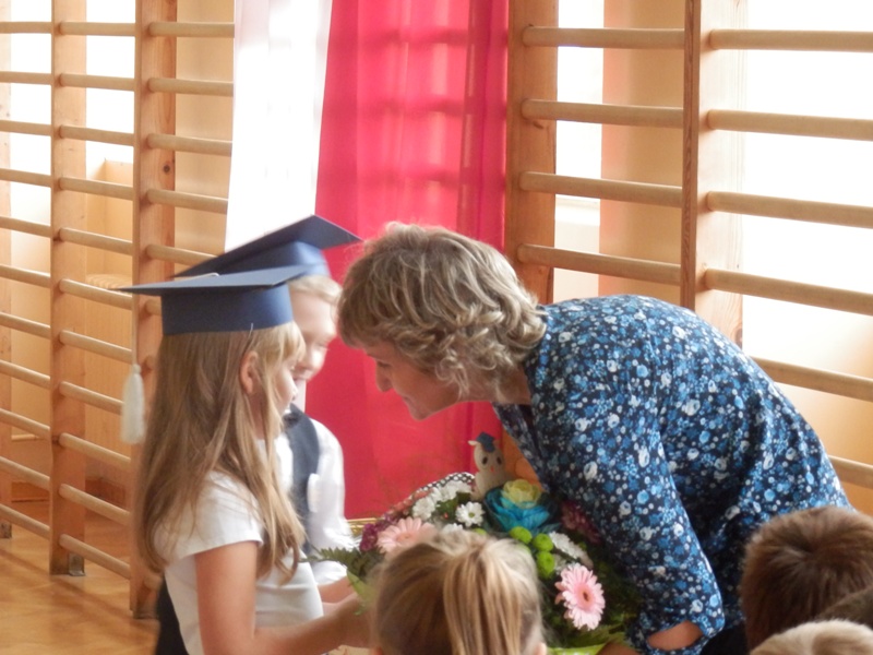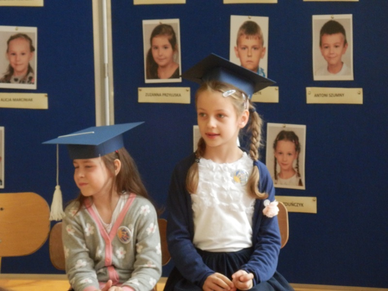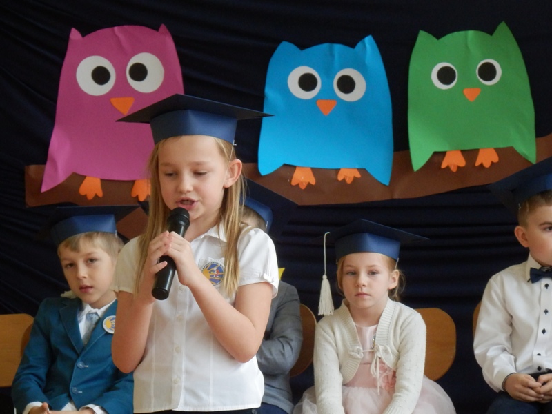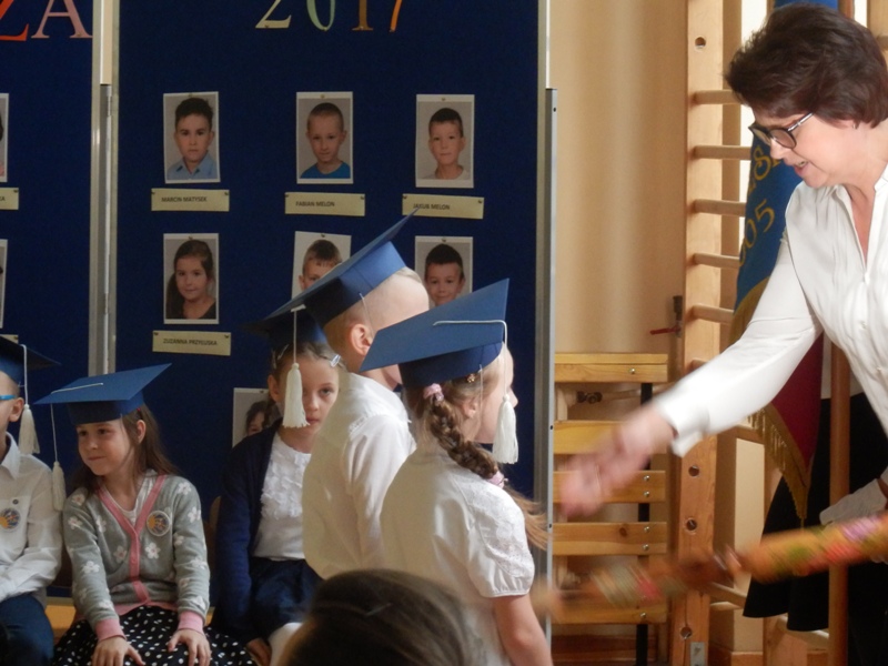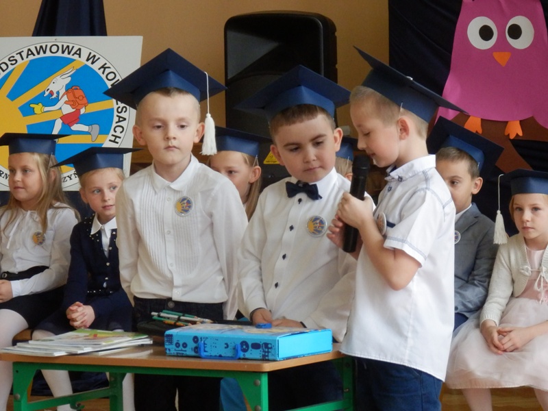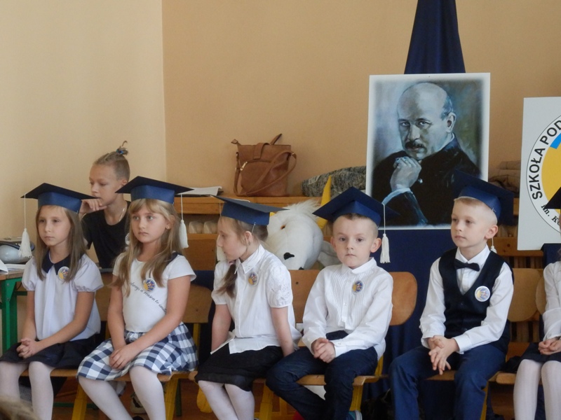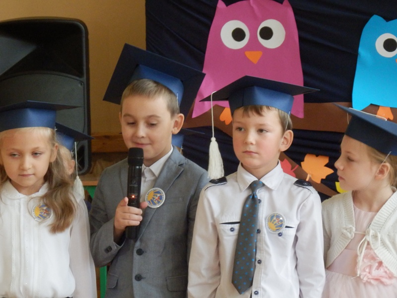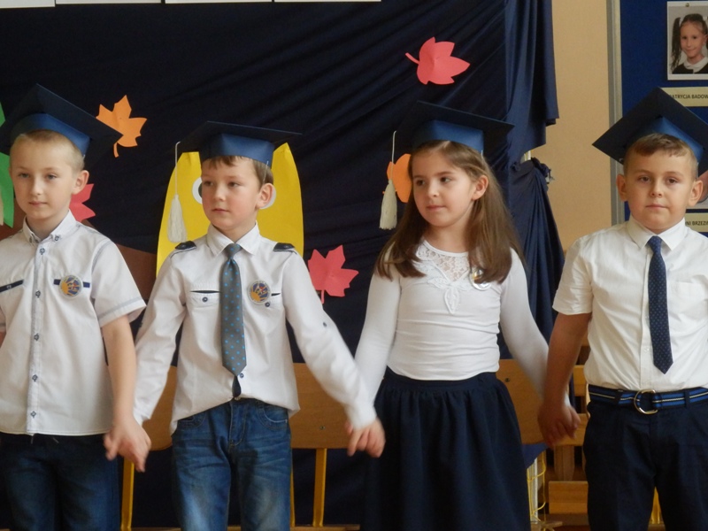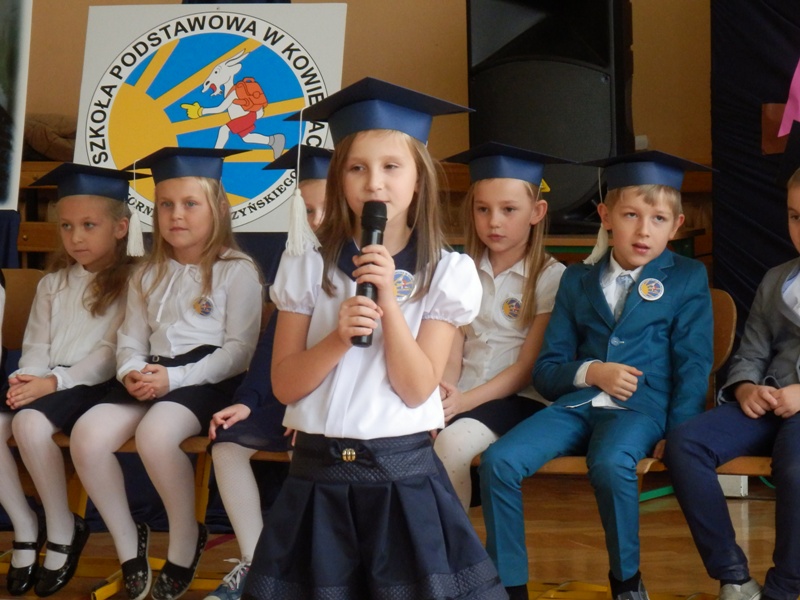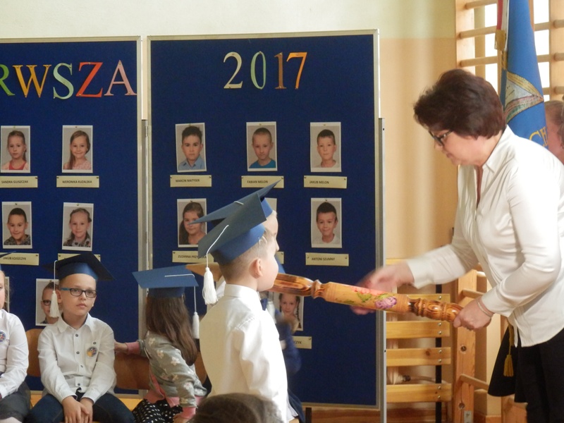 Uczniowie klasy pierwszej pod bacznymi okiem swojej wychowawczyni pani Doroty Wacławek przygotowali program artystyczny, w którym zaprezentowali swoje umiejętności muzyczne i recytatorskie. Następnie wszyscy z wielkim przejęciem ślubowali na Sztandar Szkoły. Po ślubowaniu pani dyrektor Lidia Wiedeńska, każde dziecko pasowała na ucznia oraz w słowach pełnych otuchy przekazała pierwszoklasistom życzenia m. in. wielu sukcesów.
