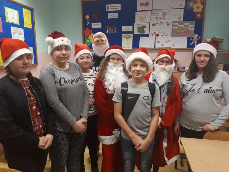 6 grudnia jest od wielu lat dniem, w którym w naszej szkole podtrzymujemy mikołajkową tradycję. Od samego rana z każdej strony kręciły się po korytarzach i w klasach dzieci ubrane na czerwono, w pięknych mikołajkowych czapkach.