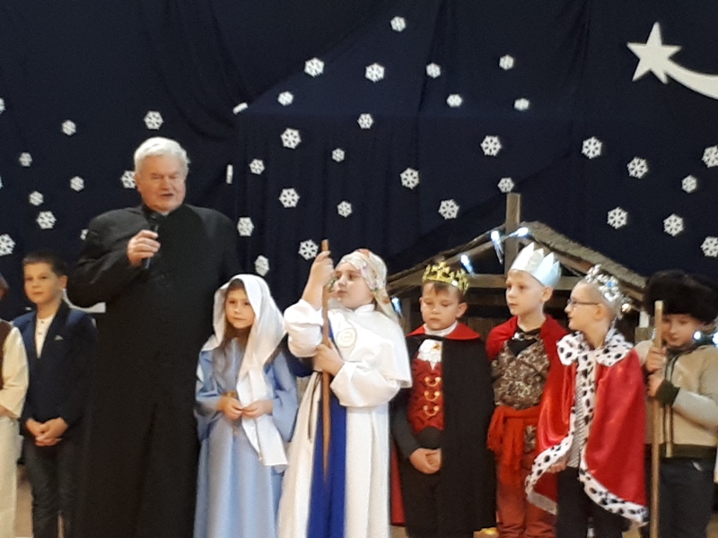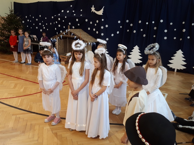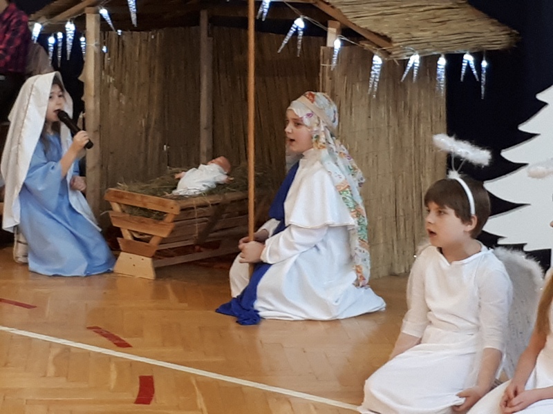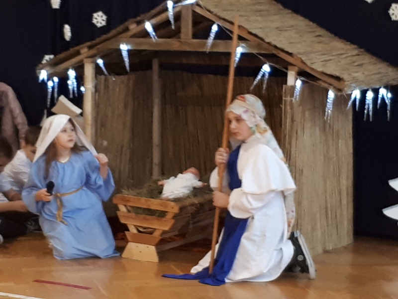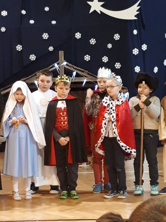 22 grudnia w naszej szkole odbyły się Jasełka. W tym roku uczniowie klasy IIIa i IIIb wraz z wychowawczyniami panią Jolantą Marią Nowak i panią Jolantą Niewczas wprowadzili nas w świąteczny nastrój. Trzecioklasiści śpiewali kolędy i pastorałki, a także przybliżyli tradycję Świąt Bożego Narodzenia. Po raz kolejny mogliśmy przeżyć historię Marii i Józefa, odkryć na nowo wydarzenia, które miały miejsce ponad dwa tysiące lat temu. Nie zabrakło również życzeń świątecznych od przybyłych gości ks. prałata Henryka Gronkiewicza, ks. Krzysztofa Majchera i Wójta Gminy Kowiesy Jarosława Pepki.