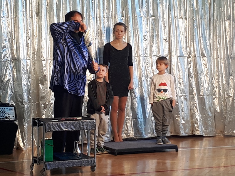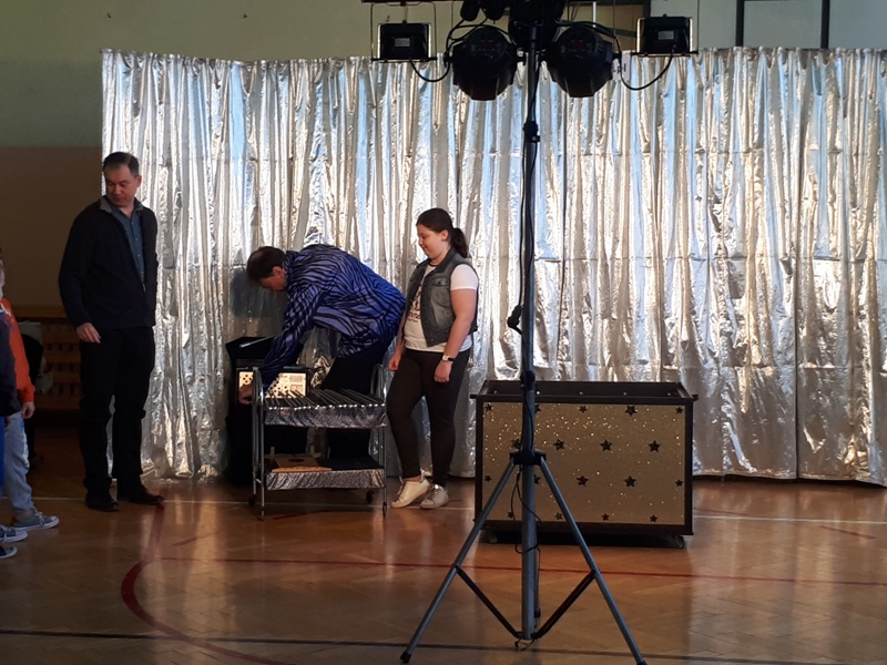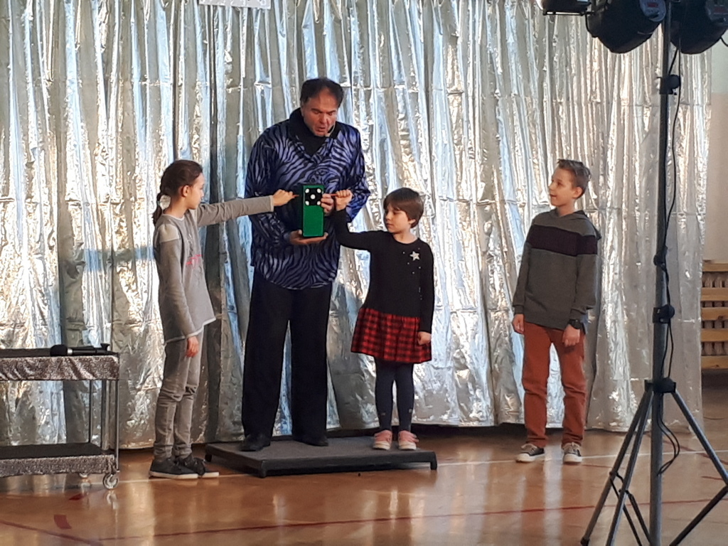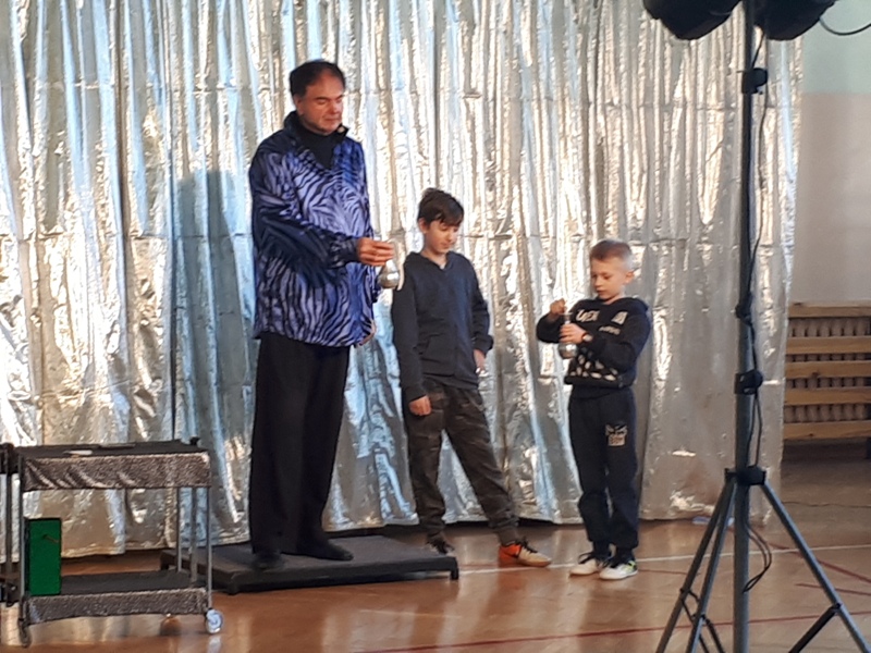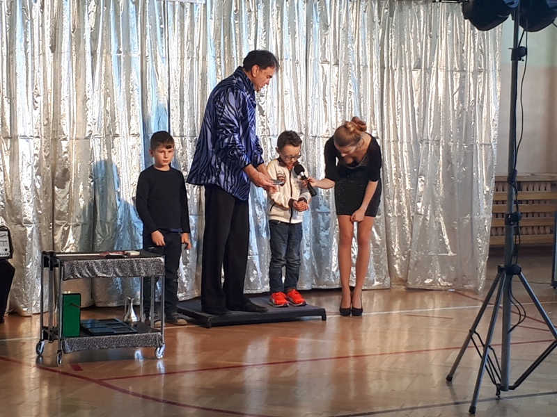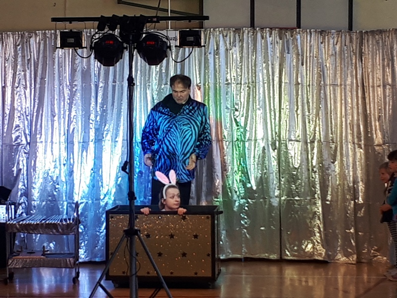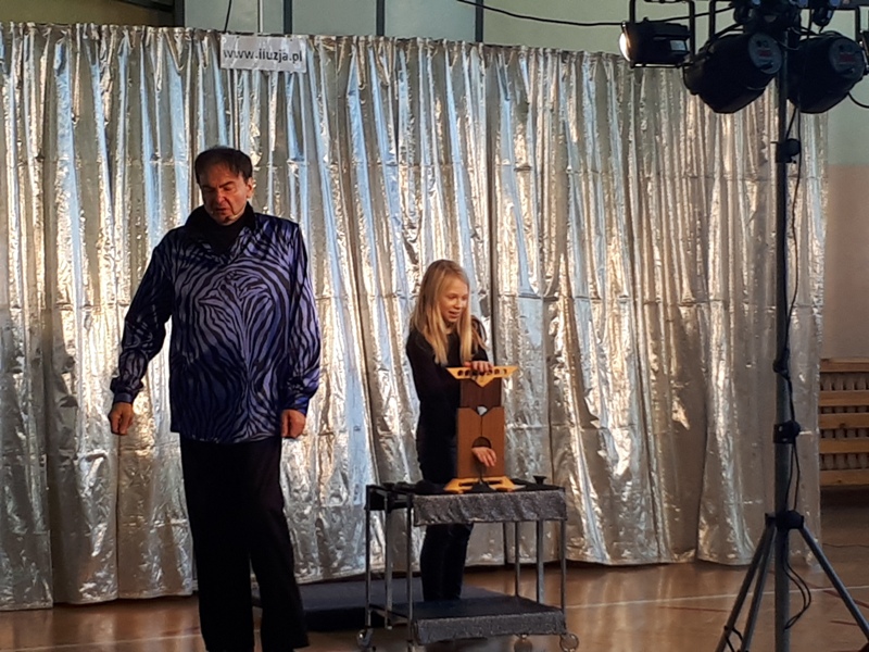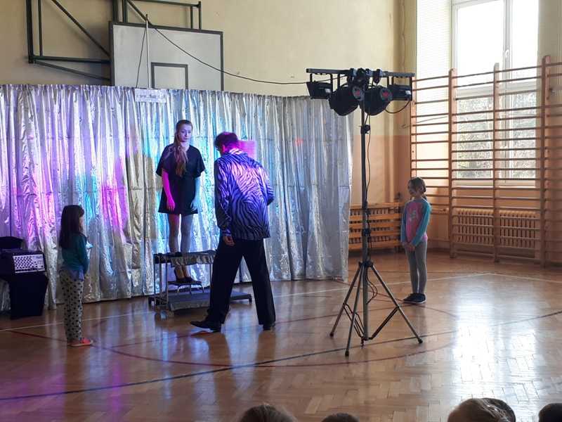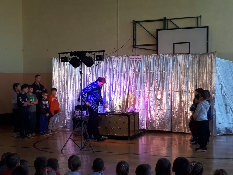 Naszą szkołę odwiedził iluzjonista z Chorwacji. W widowisku wzięli udział uczniowie ze wszystkich klas. Pokaz magii i iluzji zachwycił wszystkich widzów nawet tych dorosłych. To co wydaje się niemożliwe na scenie stawało sie realne. Iluzjonista do swoich sztuczek zapraszał uczniów z widowni, aby mu asystowali. Uczniowie mogli z bliska przyglądać się wykonywanym sztuczkom i nawet próbowali swoich sił jako magicy. Magik zalecił swoim asystentom dużo ruchu na świeżym powietrzu i spożywanie dużej ilości warzyw i owoców. Zobaczymy czy to pomoże, aby stać się iluzjonistą.