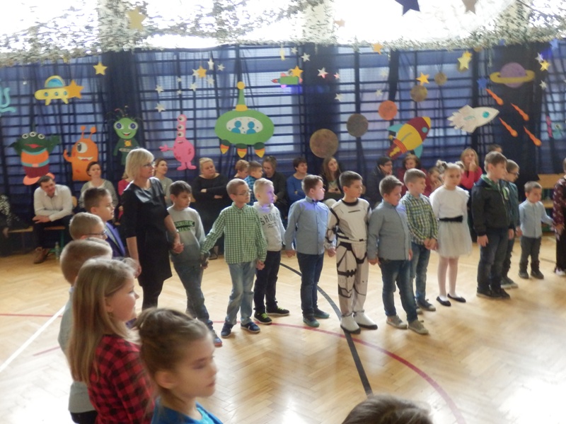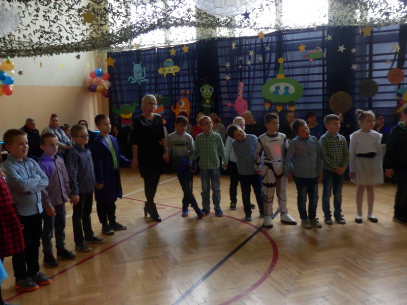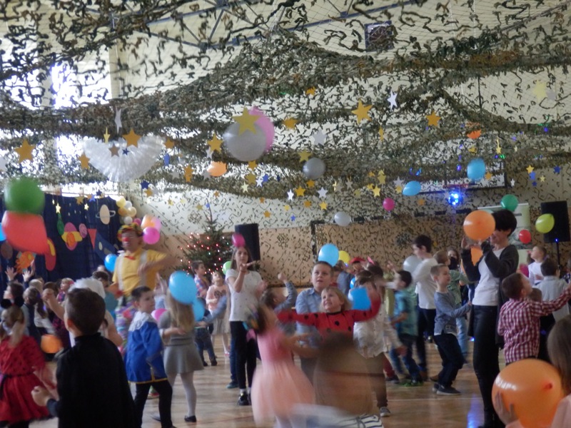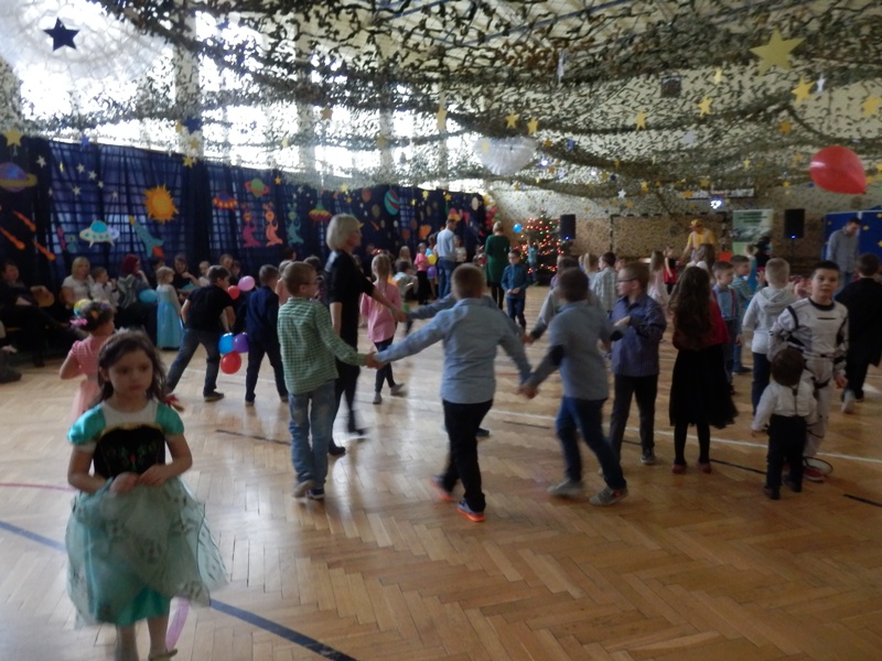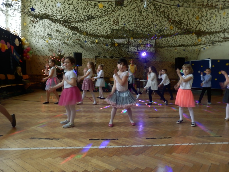 Jak co roku w naszej szkole odbyła się CHOINKA SZKOLNA. 27 stycznia sala gimnastyczna zamieniła się w salę kosmicznej zabawy. Najpierw bawili się uczniowie klas I-III, a po południu klas IV-VI. Wszyscy uczniowie tańczyli znakomicie przy rytmach różnorodnej muzyki. Był „Mikołaj”, konkursy i poczęstunek przygotowany przez rodziców. Wszystkim za wyjątkową zabawę dziękujemy.
