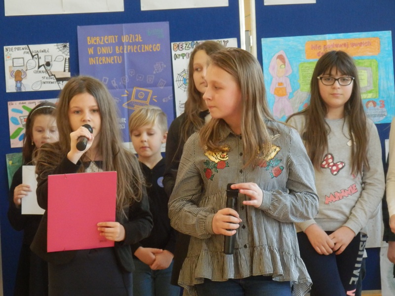 Światowy Dzień Bezpiecznego Internetu obchodzony jest w całej Europie w pierwszej połowie lutego. Jest inicjatywą Komisji Europejskiej, mającą na celu zwrócenie uwagi na kwestię bezpiecznego dostępu dzieci i młodzieży do zasobów internetowych. W naszej szkole z tej okazji uczniowie klasy Va i II pod kierunkiem pani Anny Wylezińskiej przygotowali apel, w którym całej społeczności uczniowskiej przedstawili zasady bezpiecznego korzystania z Internetu.