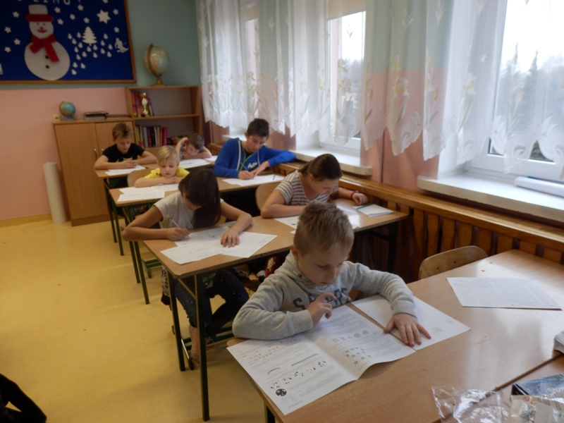 15 marca jak co roku uczniowie naszej szkoły pisali Międzynarodwowy Konkurs Matematyczny "Kangur". Zadania matematyczne sprawdzające logiczne myślenie pisało 16 uczniów z klas II - VI w poszczególnych kategoriach: ŻACZEK, MALUCH I BENJAMIN. Każdy z uczestników po skończonym konkursie otrzymał drucianą zabawkę logiczną. Wyniki poznamy dopiero w maju.