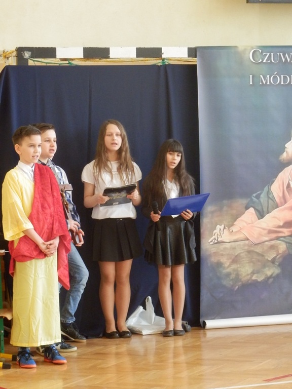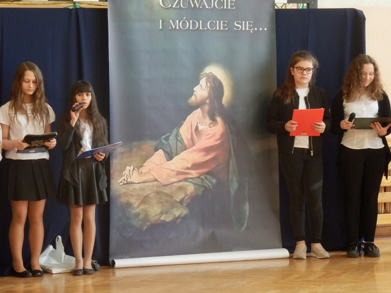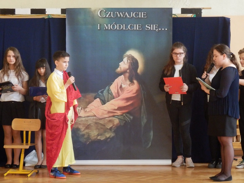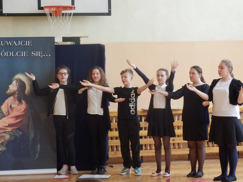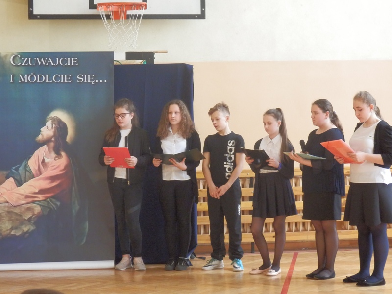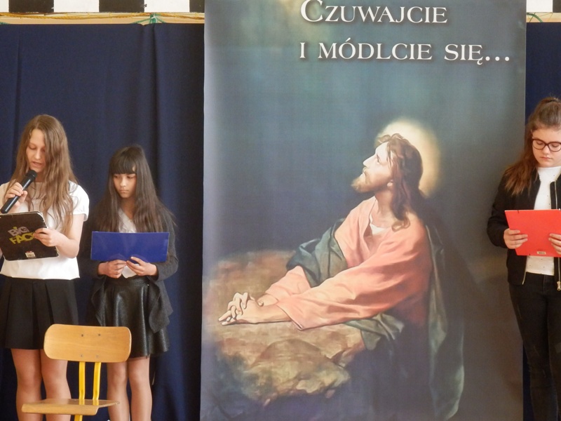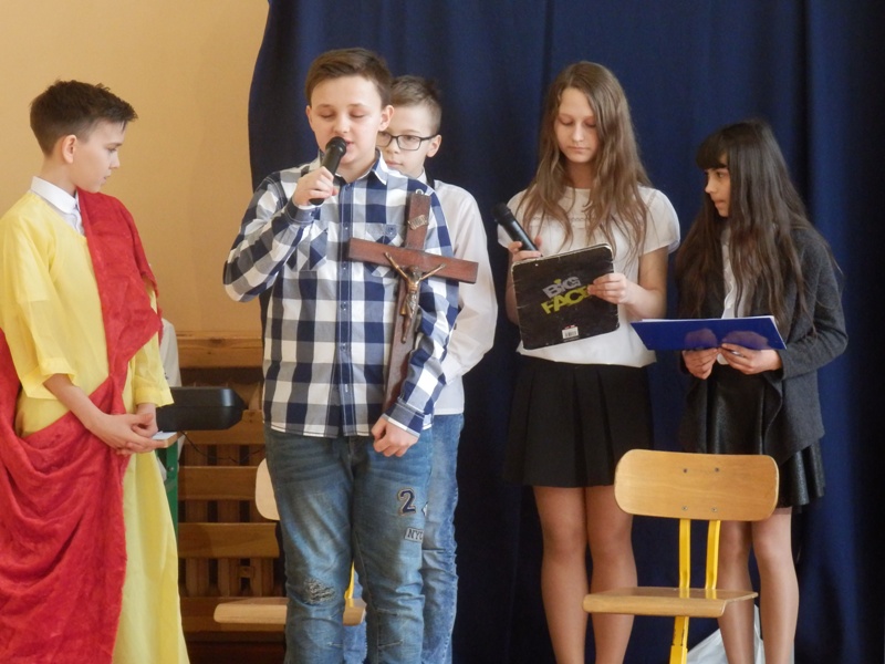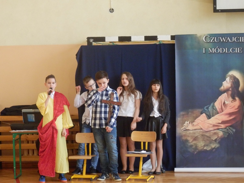 Okres Wielkiego Postu jest to czas przygotowywania się do Świąt Wielkanocnych. Tę tajemnicę poprzedza męka i śmierć Pana Jezusa na krzyżu. Uczniowie kasy V b i VI pod opieką katechetki pani Ireny Stańczak podczas apelu wielkanocnego ukazali nam istotą Świąt Wielkanocnych. Nasz szkolny Apel Wielkanocny odbył się 28.03.2018r i miał na celu przygotować naszych uczniów do właściwego przeżywania Triduum Paschalnego - Wielkiego Czwartku, Wielkiego Piątku i Wielkiej Soboty, by wreszcie w Wielką Niedzielę cieszyć się i radować, że Pan Zmartwychwstał!