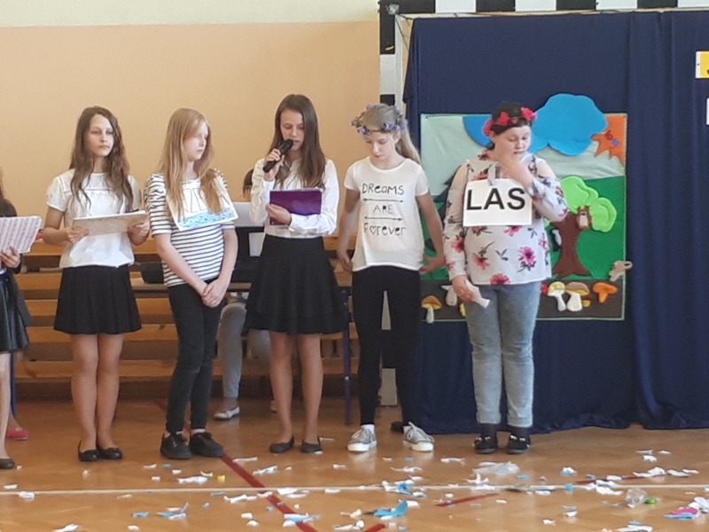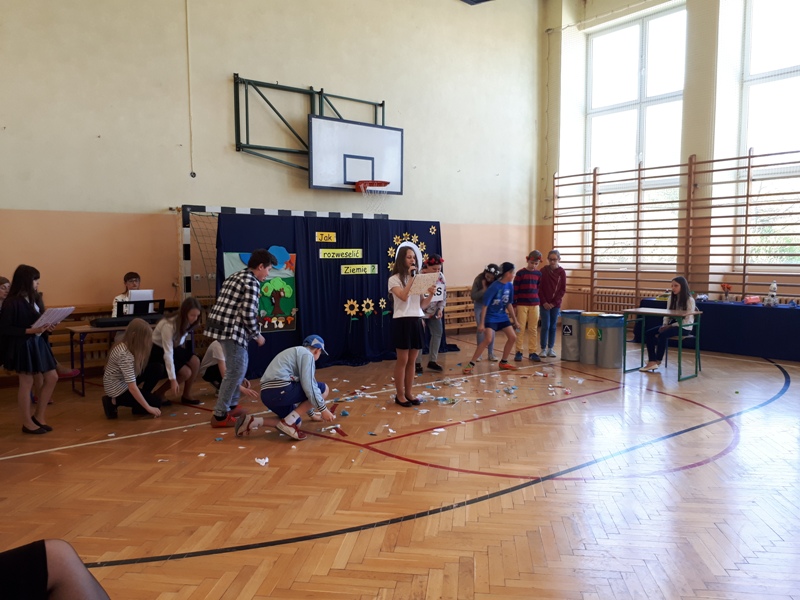 Dzień Ziemi obchodzony 22 kwietnia to czas, kiedy ludzie na całym świecie łączą siły, aby uświadomić wszystkim, że wspaniałe dary przyrody trzeba wykorzystywać mądrze - tak, aby starczyło ich dla przyszłych pokoleń. Musimy być przyjaciółmi przyrody - ekologami i dbać o środowisko. Z tej okazji uczniowie klasy V b pod kierunkiem pań: Ireny Stańczak i Zuzanny Dudziak przygotowali apel, którego celem było promowanie postaw ekologicznych w społeczeństwie.