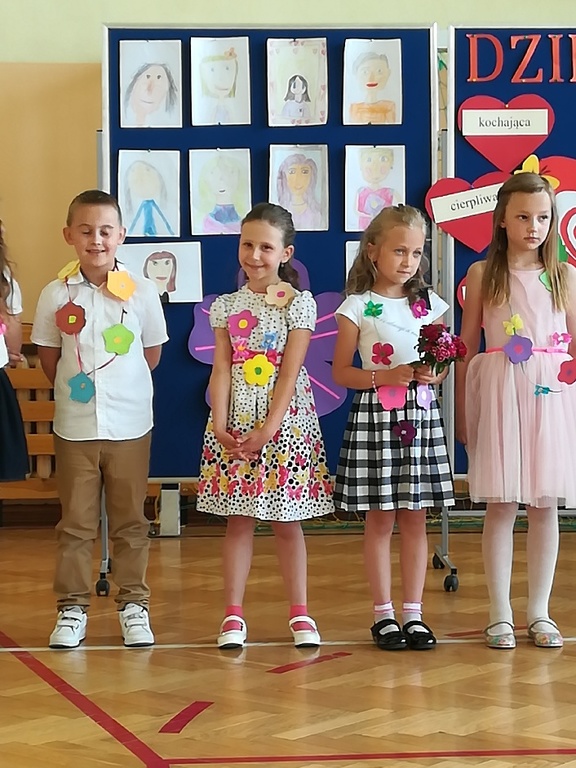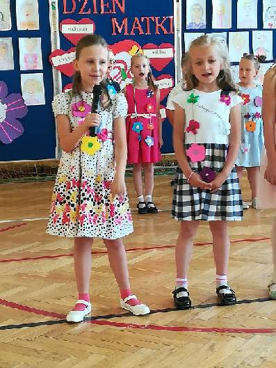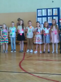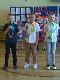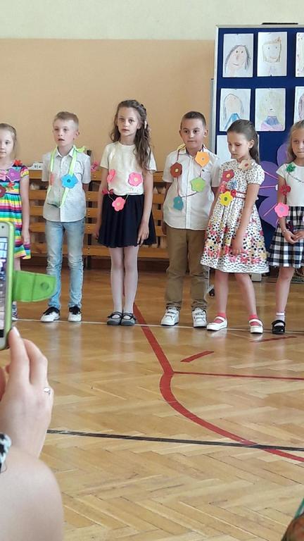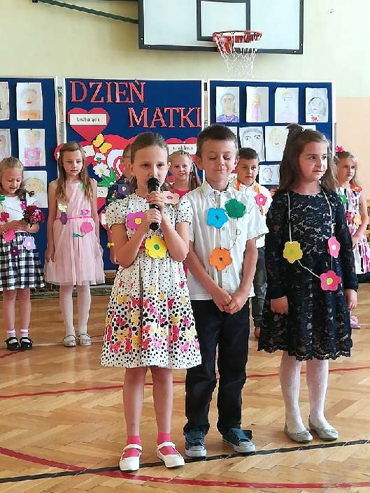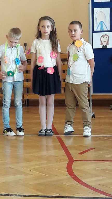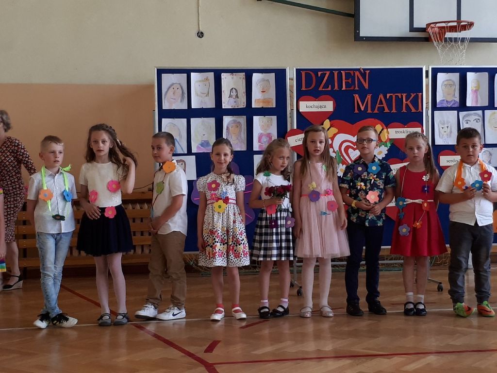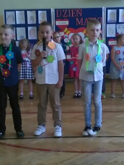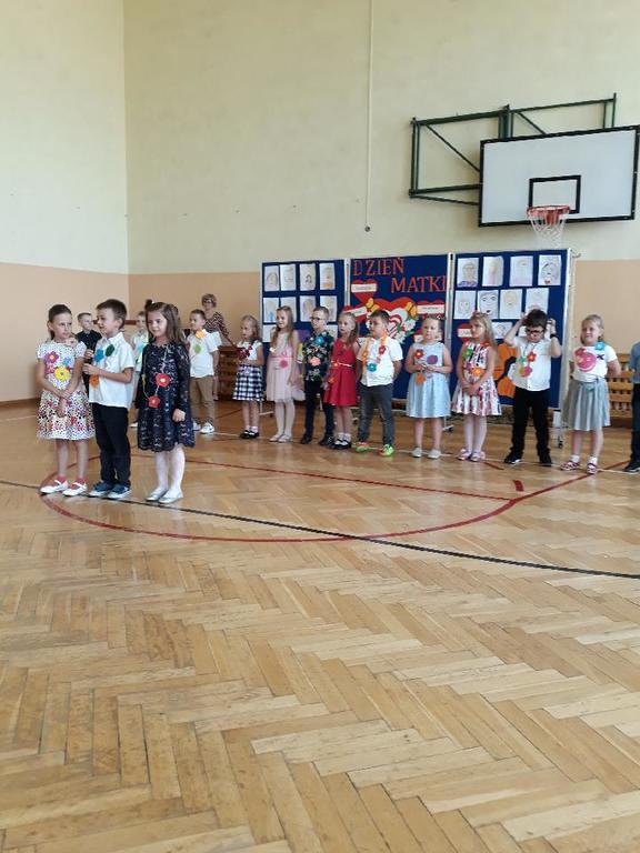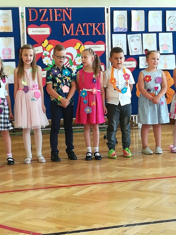 26 maja obchodzimy Dzień Matki. Z tej okazji uczniowie klasy pierwszej wraz z wychowawczynią Dorotą Wacławek przygotowali program artystyczny pt. ,,Życzenia dla Mamy'', w czasie którego recytowali piękne wierszyki i śpiewali piosenki o mamie. Dzieci wręczyły swoim mamom własnoręcznie wykonane laurki i naszyjniki. Na zakończenie wszyscy uczniowie odśpiewali ,, 100 lat '' przy dźwiękach trąbki, na której zagrał jeden z pierwszaków. Szczęśliwe mamy nie kryły wzruszenia nagradzając swoje dzieci wielkimi brawami i buziakami.