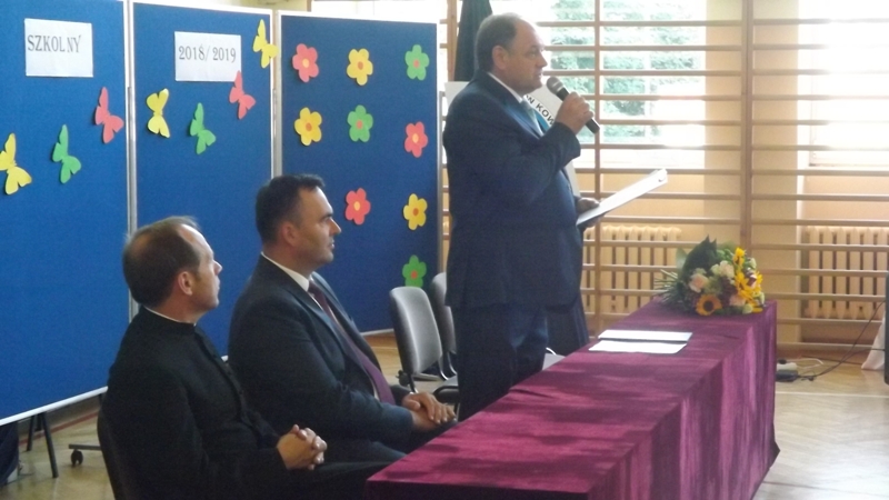 3 września w naszej szkole odbyło się uroczyste rozpoczęcie nowego roku szkolnego 2018/2019. Inauguracja odbyła się w sali gimnastycznej, gdzie wszystkich zebranych: uczniów, rodziców, nauczycieli, pracowników oraz przybyłych gości przywitał nowy dyrektor szkoły Marek Adamczyk. Dyrektor krótko omówił organizację pracy szkoły w nowym roku szkolnym, przedstawił wychowawców klas oraz nowych nauczycieli. Z okazji nowego roku szkolnego Pan Dyrektor życzył wszystkim naszym uczniom, aby był to rok pełen sukcesów, pozytywnych doświadczeń związanych ze zdobywaniem wiedzy. Nauczycielom i wychowawcom – nowatorskich, kreatywnych działań oraz wielu sukcesów w pracy zawodowej. Rodzicom - owocnej współpracy ze szkołą, która warunkuje dobre efekty wychowawcze, a pracownikom szkoły – spokoju i zadowolenia z wykonywanej pracy. Po części oficjalnej uczniowie udali się do klas, gdzie spotkali się ze swoimi wychowawcami.