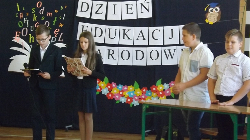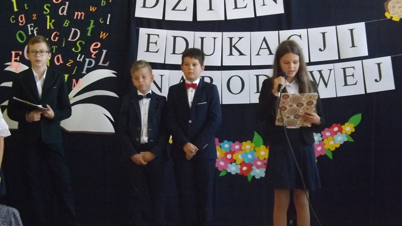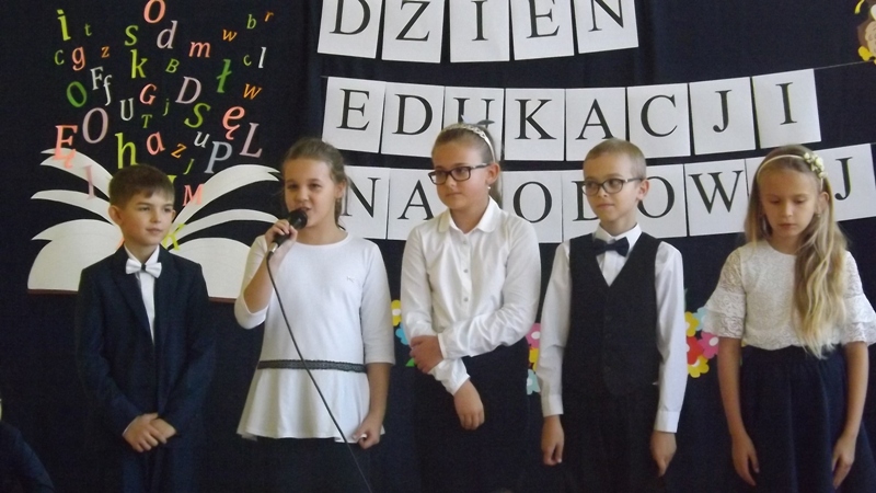 W piątek, 12 października w naszej szkole odbyły się obchody Dnia Edukacji Narodowej. Uczniowie, nauczyciele, pracownicy szkoły i zaproszeni goście spotkali się na uroczystym apelu w sali gimnastycznej. Program artystyczny przygotowały: klasa IV „a” oraz VI „a” wraz ze swoimi wychowawczyniami, panią Anną Wylezińską i panią Renatą Szymańską. Nad oprawą muzyczną czuwała pani Dominka Sobczyńska, zaś Samorząd Uczniowski z opiekunem panią Sylwią Sas, wręczył nauczycielom drobne słodkości. Na koniec uroczystości pan dyrektor Marek Adamczyk wręczył wyróżnionym nauczycielom nagrody.