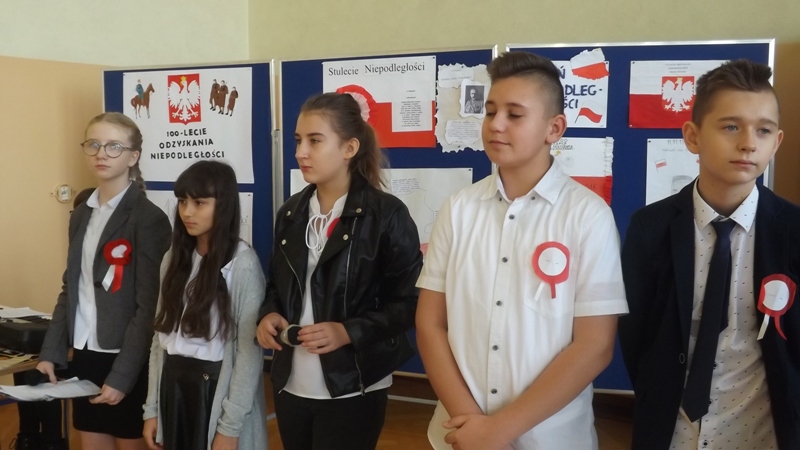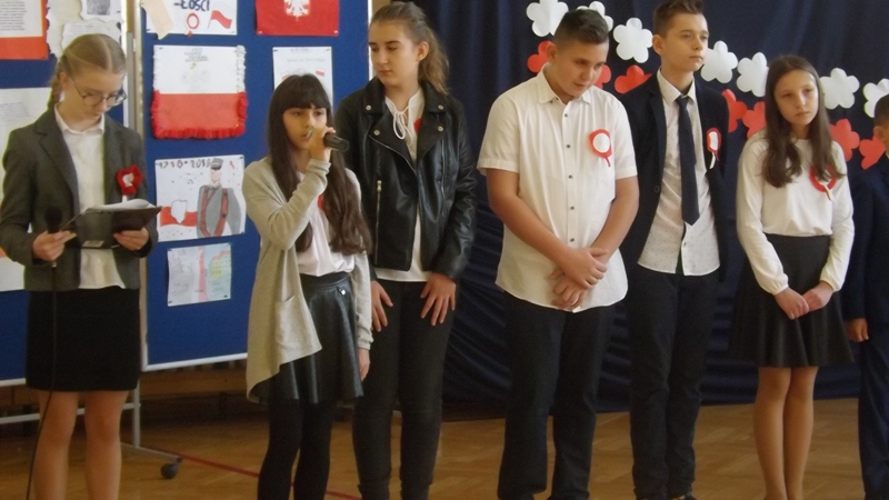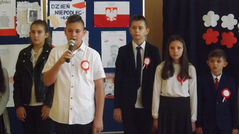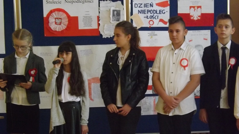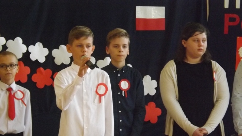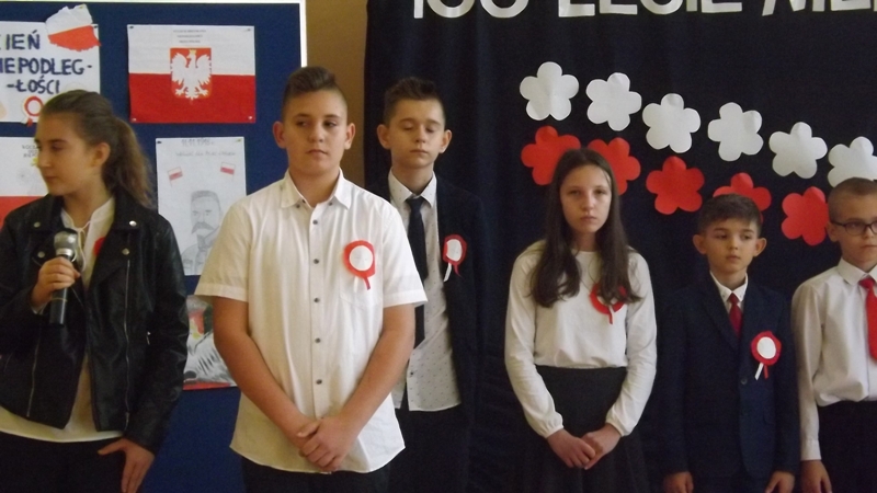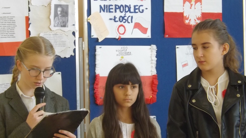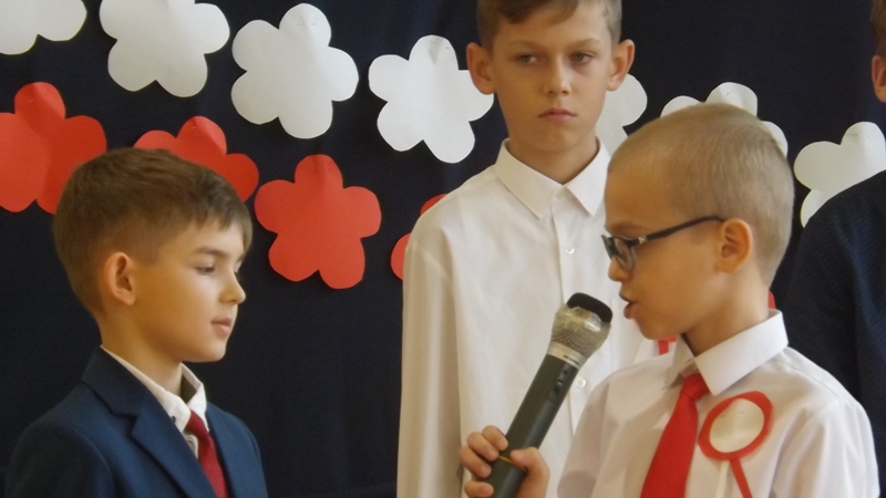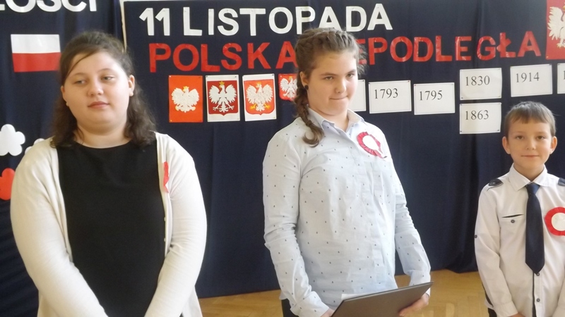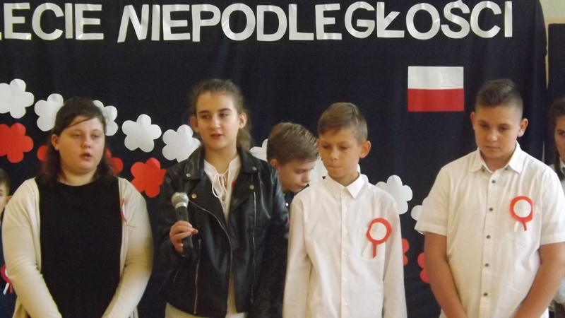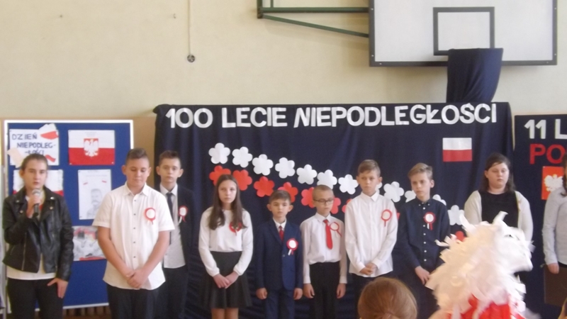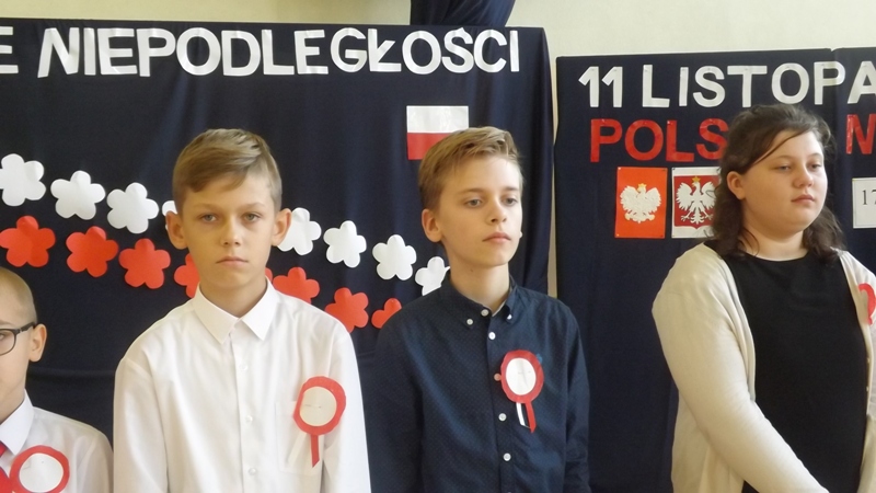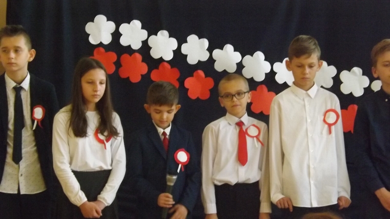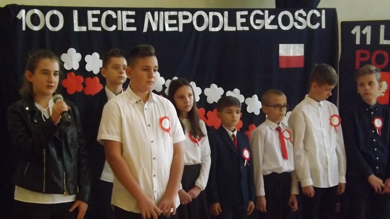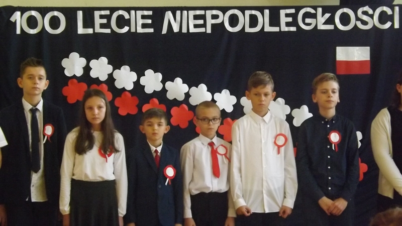 Dziś mamy wolną i niepodległą Polskę. Pamięć o 11 listopada to szacunek dla tych wielkich, często bezimiennych bohaterów, to hołd składany w postaci pamięci czasu minionego. W naszej szkole uroczysta akademia z okazji Święta Niepodległości odbyła się w czwartek 8 listopada. Uczniowie klasy VI b oraz przedstawiciele klasy IV a i II pod kierunkiem pani Karoliny Salamon, pani Dominiki Sobczyńskiej i pani Anny Wylezińskiej przypomnieli w skrócie najważniejsze karty historii, recytowali wiersze patriotyczne. Cała społeczność uczniowska, nauczyciele i zaproszeni goście usłyszeli znane pieśni: „Piechota”, „Rozkwitały pąki białych róż”, „Przybyli ułani”, „Rota”, „Ojczyzno ma”, „Jak długo w sercach naszych”. Ta wyjątkowa rocznica odzyskania niepodległości, uświadamia nam, że jest to najważniejszy dzień w historii naszego kraju.