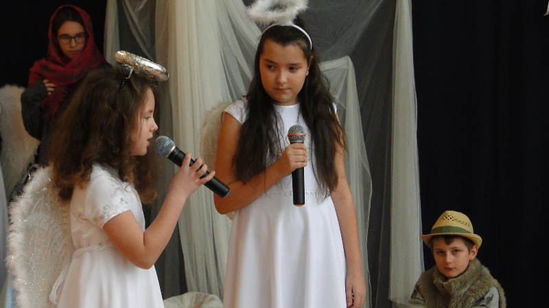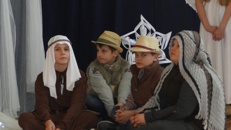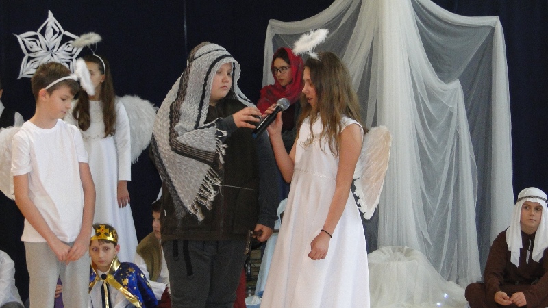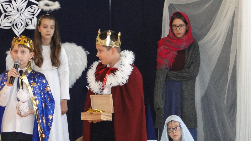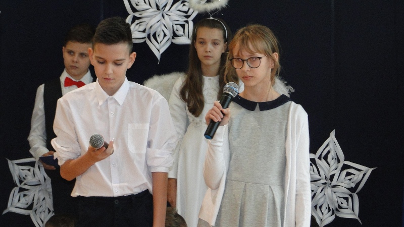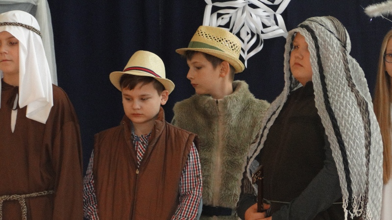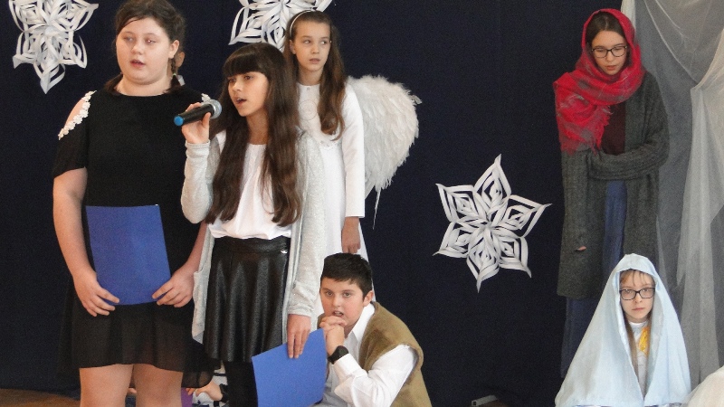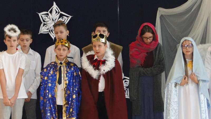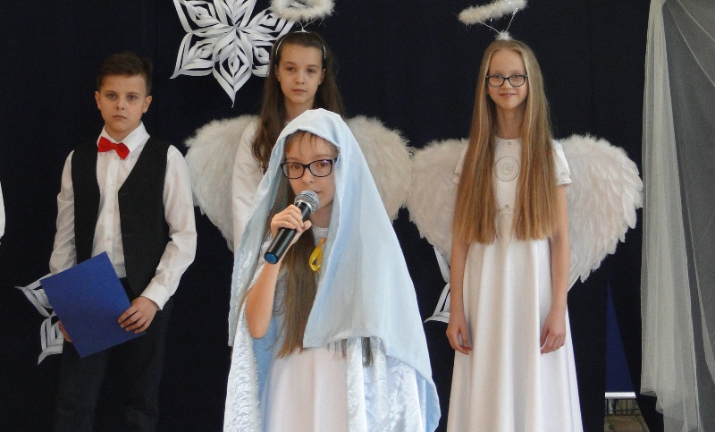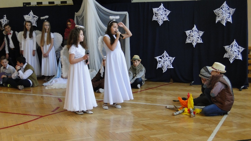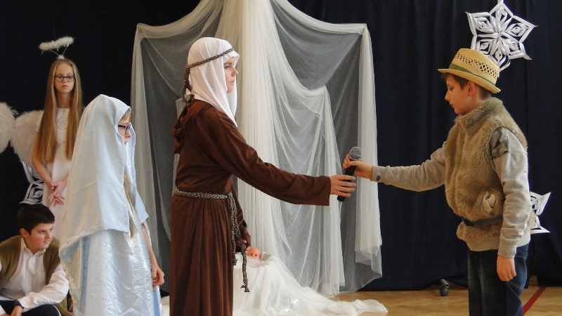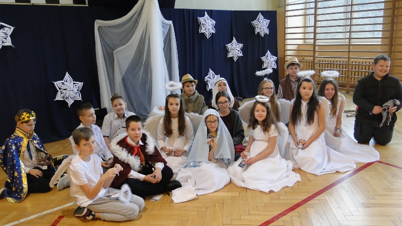 Tradycyjnie już, jak co roku tuż przed świętami Bożego Narodzenia, 21 grudnia odbyły się w naszej szkole Jasełka. Tym razem w rolę aktorów odtwarzających historię sprzed ponad dwóch tysięcy lat wcielili się uczniowie z klasy V „b” pod kierunkiem pani Jolanty Niewczas i pani Zuzanny Dudziak. Piękne kolędy zaśpiewali dla nas uczniowie z klasy VI „a” i VI „ b”, którym akompaniowała pani Dominika Sobczyńska. Przedstawienie obejrzeli: dyrektor, nauczyciele, pracownicy, cała społeczność uczniowska oraz rodzice i zaproszeni goście. Po części artystycznej pan dyrektor Marek Adamczyk podziękował młodym artystom oraz ich opiekunom, złożył wszystkim świąteczne życzenia.