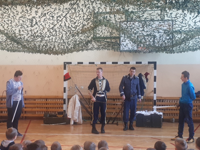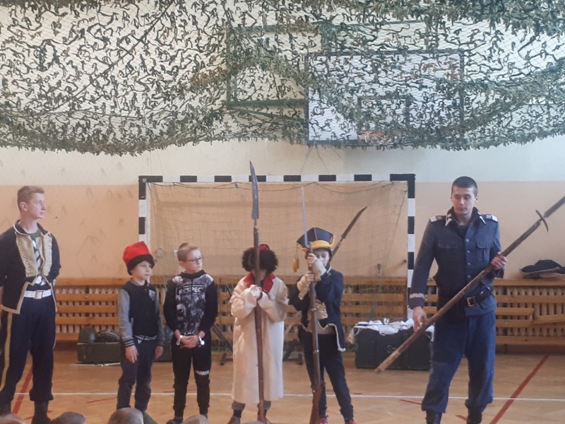 8 lutego w naszej szkole odbyła się żywa lekcja historii. Grupa Artystyczna "Rekonstrukto" zaprezentowała nam pokaz historyczny pt. "Ku Niepodległej" - opowieść o tym jak bohaterowie walczyli o wolność, honor i ojczyznę. Podczas pokazu artyści zapoznali uczniów z obyczajami i kulturą epoki. Każdy mógł osobiście obejrzeć kolekcję broni, stroje, uzbrojenie.