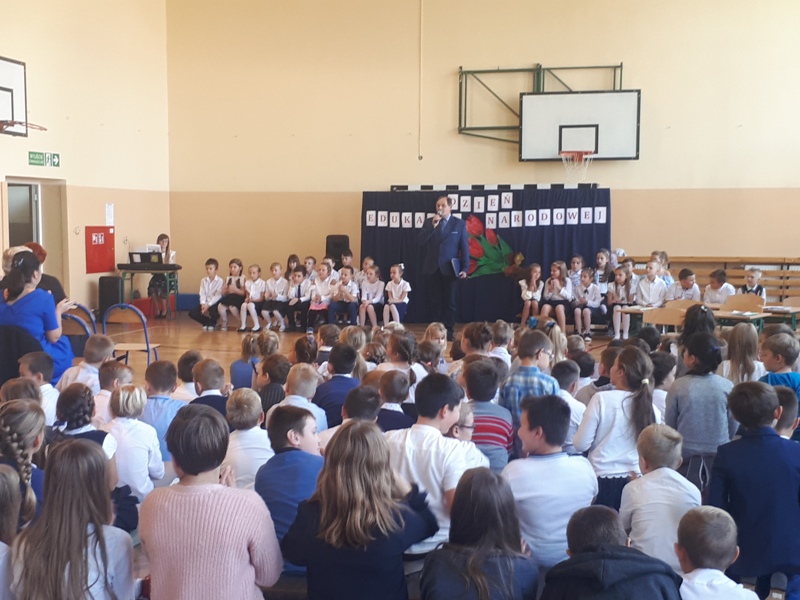 Dnia 11.10.2018 r. odbyła się akademia z okazji Dnia Edukacji Narodowej, na którą przybyli uczniowie, nauczyciele, pracownicy obsługi oraz rodzice i zaproszeni goście. Przedstawienie przygotowali uczniowie z klasy IIIa i IIIb pod kierunkiem pani D. Sobczyńskiej i Z. Mrówczyńskiej. Trzecioklasiści piosenką i słowem uświetnili ten wyjątkowy dzień w roku szkolnym. Wiele ciepłych i miłych słów popłynęło w kierunku nauczycieli i pracowników obsługi. Uczniowie docenili i podkreślili swoją wdzięczność za codzienny trud , poświęcenie, czujność i troskę. Na zakończenie głos zabrał pan dyrektor Marek Adamczyk, który mówił o trudnej, ale jakże pięknej pracy nauczyciela. Podziękował za dotychczasowe zaangażowanie oraz życzył wielu sił i wytrwałości w tym wyjątkowym zawodzie.