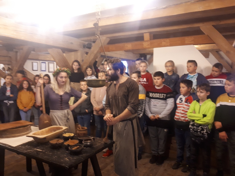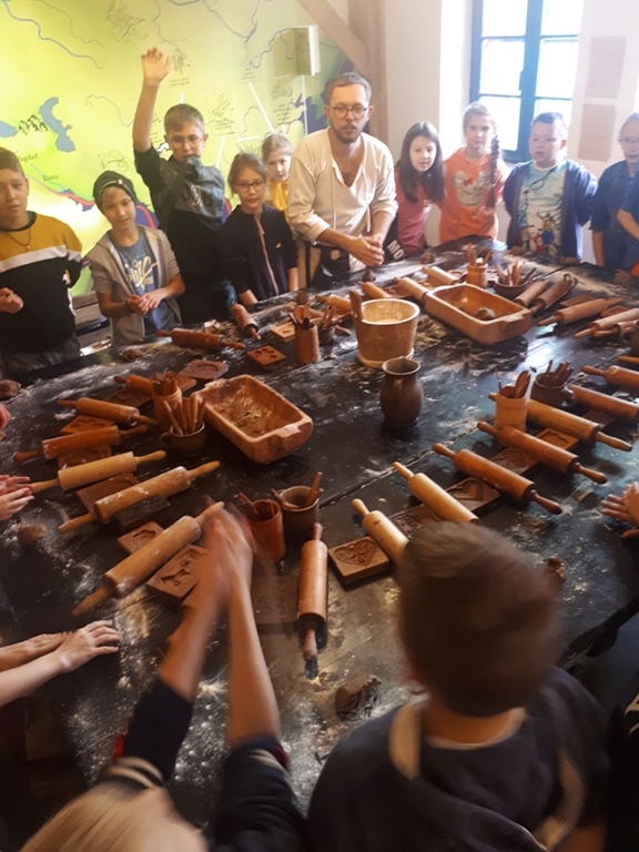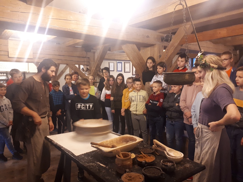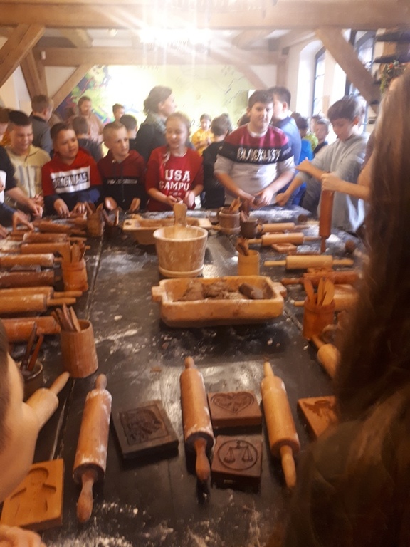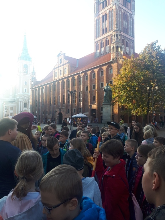 23 października uczniowie klas IV – VI wraz z opiekunami panią: Anną Wylezińską, Lidią Wiedeńską, Izabellą Smok udali się na jednodniową wycieczkę do Torunia. Pierwszym punktem wizyty w Toruniu był pobyt w Żywym Muzeum Piernika. Uczyliśmy się tam własnoręcznie wypiekać pierniki w sposób w jaki czyniono to 500 lat temu. Kolejnym punktem był seans w Planetarium. Wszyscy z zapartym tchem oglądaliśmy film pt. „Cudowna podróż”. Dostarczył on wielu wrażeń, a także pogłębił wiedzę o gwiazdach i planetach. Następnie wraz z przewodnikiem wybraliśmy się na spacer po Starym Mieście. Zwiedziliśmy muzeum podróżników im. Tony’ego Halika – słynnego polskiego podróżnika. Wąskimi uliczkami przeszliśmy pod Krzywą Wieżę z którą związana jest legenda o zakochanym zakonniku. Zobaczyliśmy pomnik Mikołaja Kopernika, ratusz, Katedrę NMP, „Fontannę ze złotymi żabkami, Dom Kopernika - przypuszczalne miejsce urodzin słynnego astronoma i Bulwar Filadelfijski ciągnący się wzdłuż Wisły na całej długości średniowiecznych murów miejskich. Po zwiedzeniu największych atrakcji miasta uczniowie mieli możliwość zakupienia toruńskich pierników i pamiątek. Wróciliśmy zadowoleni i pełni niezapomnianych wrażeń.