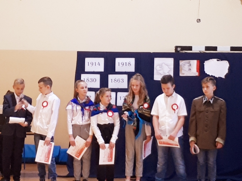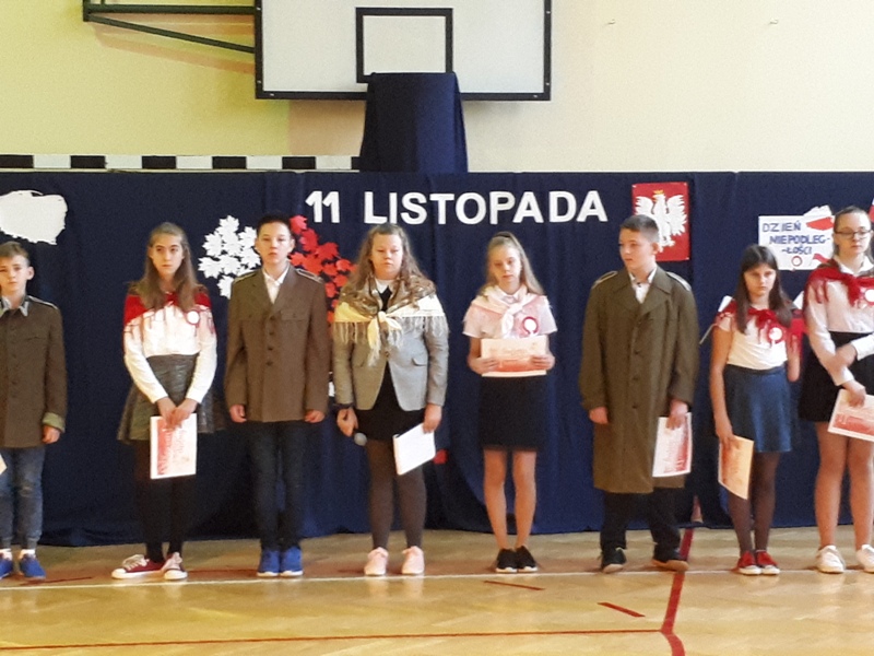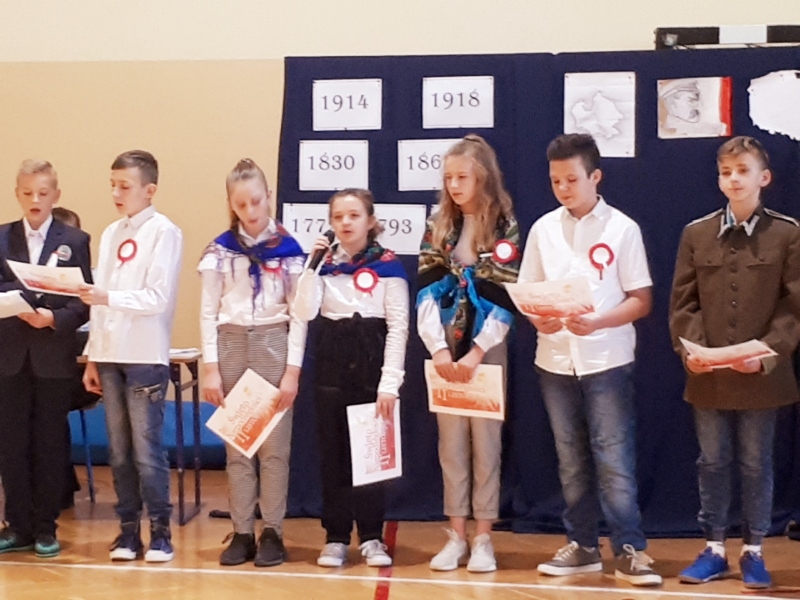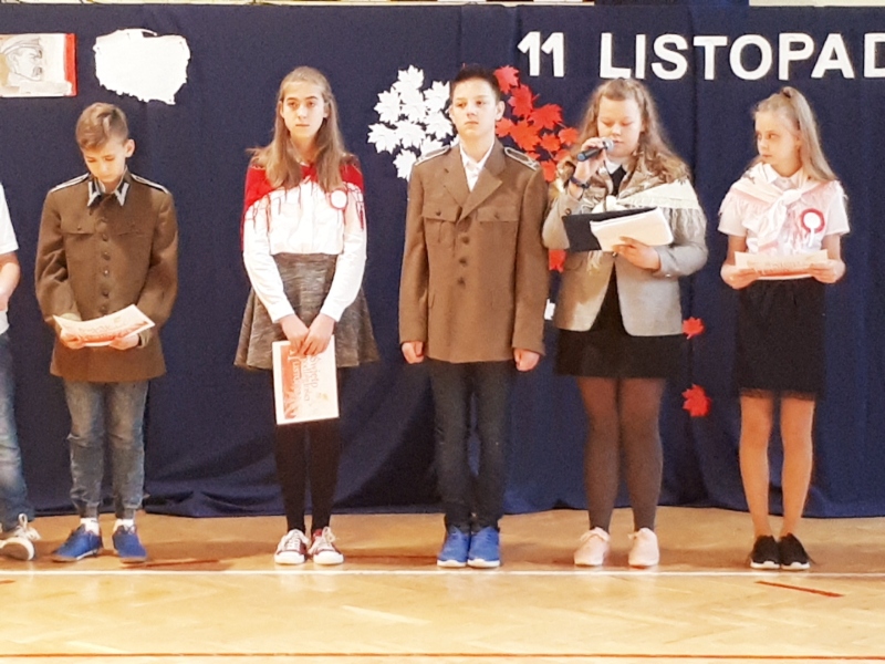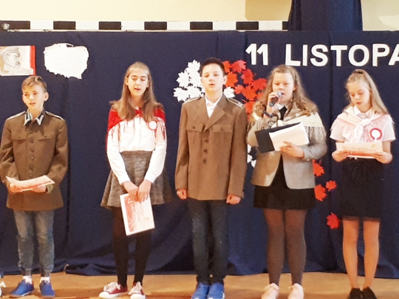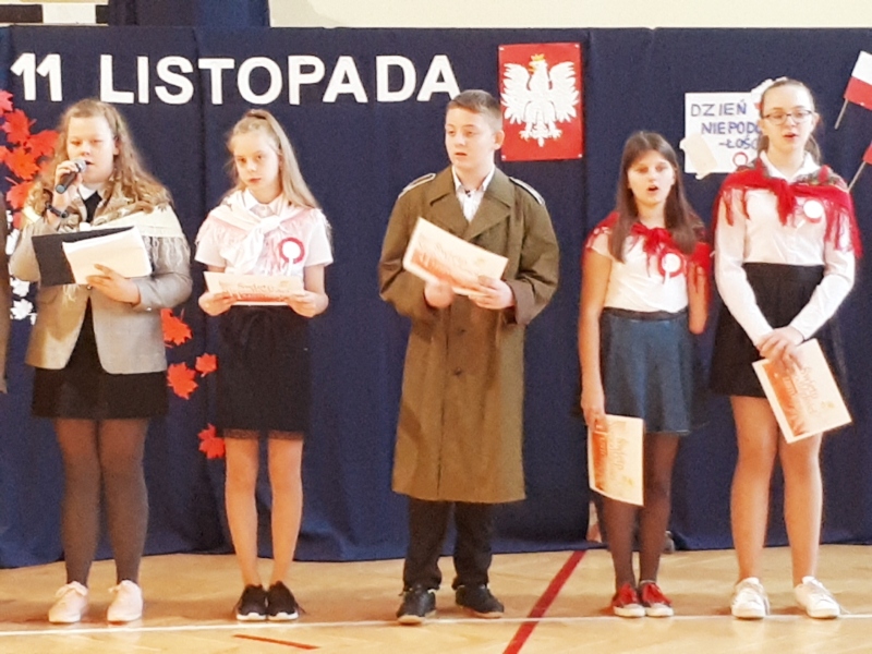 13.11.2017r. w naszej szkole odbył się uroczysty apel z okazji Dnia Niepodległości przygotowany przez klasę VI a pod kierunkiem pani Karoliny Salamon. Miał on uroczysty i podniosły charakter. Oprócz przypomnienia historii odzyskania niepodległości mieliśmy okazję wspólnie zaśpiewać pieśni patriotyczne. Nasza szkoła również włączyła się do akcji „Szkoła do hymnu” i 8 listopada o godzinie 11.11 w sali gimnastycznej cała społeczność uczniowska odśpiewała hymn narodowy.