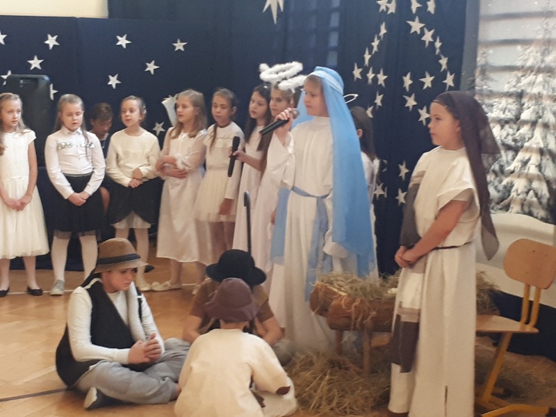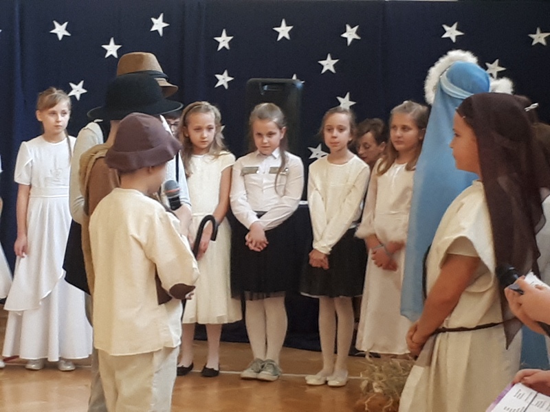 Czas oczekiwania na Boże Narodzenie należy do najpiękniejszych w roku. Dlatego też tradycją naszej szkoły są coroczne jasełka przygotowywane przez uczniów pod opieką pani Ireny Stańczak i pani Dominiki Sobczyńskiej. Nie inaczej było i w tym roku bowiem 19 grudnia uczniowie klasy IV oraz wybrani soliści z kas III - VI mieli możliwość zaprezentowania swoich zdolności artystycznych - aktorskich, wokalnych i muzycznych. W pięknej scenografii i w specjalnie przygotowanych kostiumach wprowadzili zgromadzoną publiczność w świąteczny nastrój.