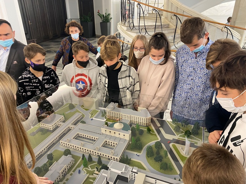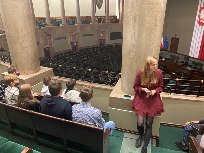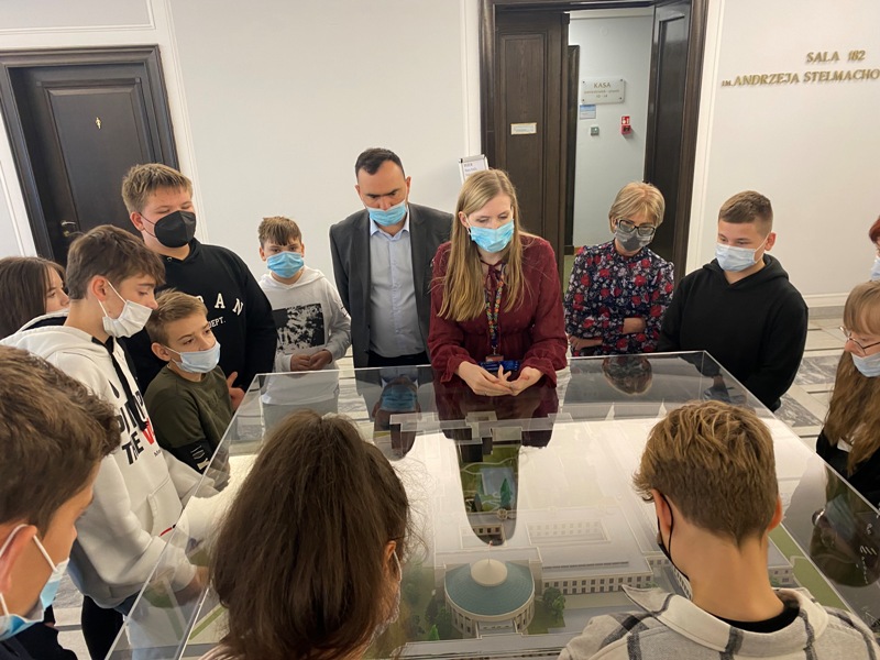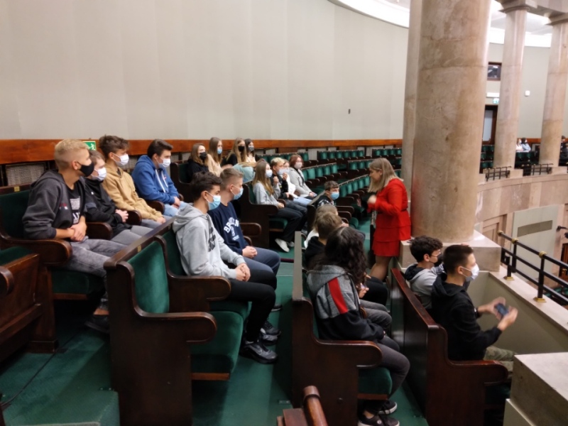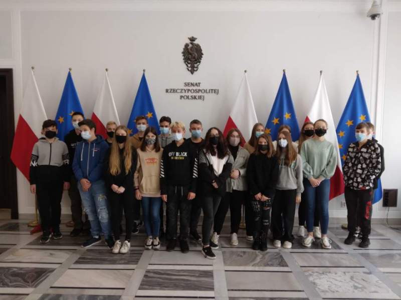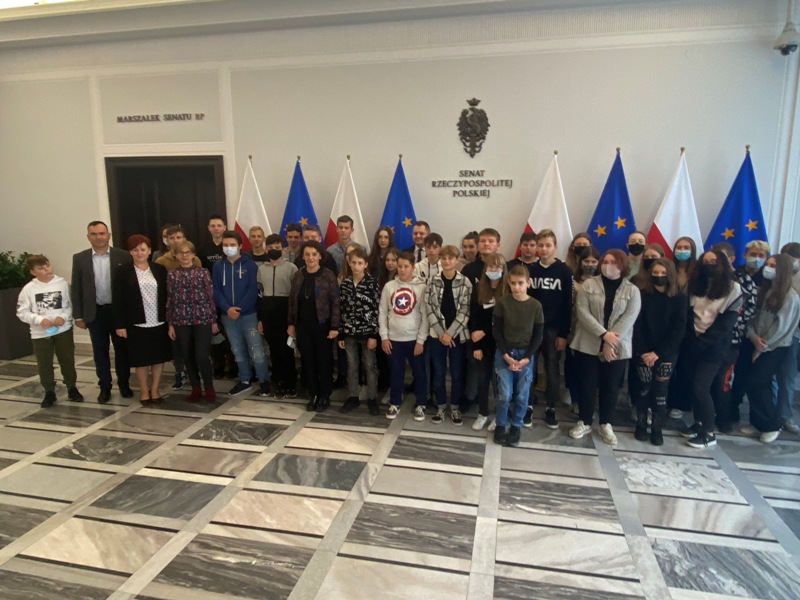 12 października 2021r.dzięki zaproszeniu senatora pana Rafała Ambrozika uczniowie klas ósmych wybrali się na wycieczkę do siedziby Sejmu i Senatu Rzeczypospolitej Polskiej. Zwiedzaniem najważniejszego budynku w kraju byliśmy zachwyceni. Dotychczas oglądaliśmy ten gmach tylko na ekranach telewizyjnych. Teraz byliśmy w samym środku i nawet siedzieliśmy w fotelach senatorskich. Zwiedziliśmy również Krakowskie Przedmieście oraz Starówkę. Niewątpliwie było to dla nas ważne wydarzenie, które zostanie zapisane w pamięci. Dziękujemy również panu Jarosławowi Pepce – Wójtowi Gminy Kowiesy za wycieczkę pełną wrażeń.