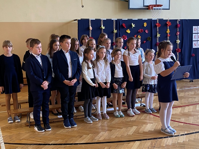 Dnia 15.10.2021 r. świętowaliśmy Dzień Edukacji Narodowej. Podczas tej uroczystości zaszczycili nas swą obecnością: pan Jarosław Pepka– Wójt Gminy Kowiesy, ks. proboszcz Krzysztof Majcher oraz pani Ewa Pawlak – kierownik Gminnego Zespołu Oświaty. Część artystyczną – słowno-muzyczną przygotowali uczniowie klas piątych pod opieką pani Zuzanny Dudziak i pani Dominiki Sobczyńskiej. Pan Dyrektor Marek Adamczyk wręczył nagrody dla nauczycieli i pracowników szkoły i życzył im dalszych sukcesów. Nie zabrakło wzruszeń i uśmiechów- to był bowiem wyjątkowy dzień.