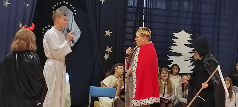 Czas oczekiwania na Boże Narodzenie należy do najpiękniejszych w roku. Ze Świętami Bożego Narodzenia wiąże się wiele pięknych tradycji i zwyczajów. Dlatego też tradycją naszej szkoły są jasełka przygotowywane przez uczniów pod opieką nauczycieli.Ogromne zaangażowanie młodych aktorów i czas poświęcony na próby – opłacił się. Jasełka bardzo się podobały. Zostały ciepło przyjęte przez publiczność i nagrodzone gromkimi brawami.