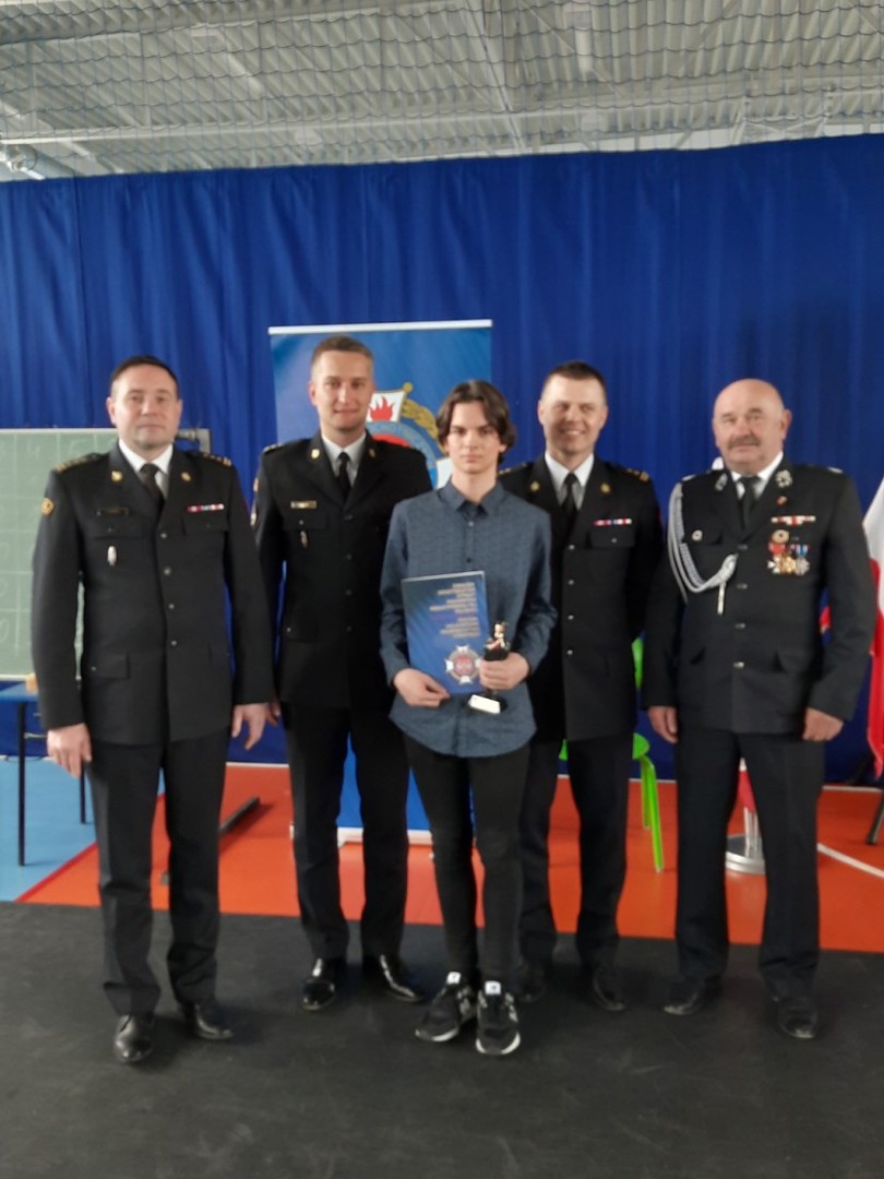 a także historii i tradycji ruchu strażackiego. Ze względu na tematykę turnieju uczestnicy muszą wykazać się też wiedzą z chemii czy fizyki. Uczestnicy turnieju mięli za zadanie rozwiązać trudny test, a trzech najlepszych zmagało się jeszcze z pytaniami ustnymi. Najlepszy wynik w kategorii klas V-VIII uzyskał uczeń naszej szkoły – Bartosz Pietrzak,który reprezentował powiat skierniewicki na szczeblu wojewódzkim. Jego pasja, dociekliwość i ciężka praca sprawiły, że 7 maja po zmaganiach z zadaniami testowymi