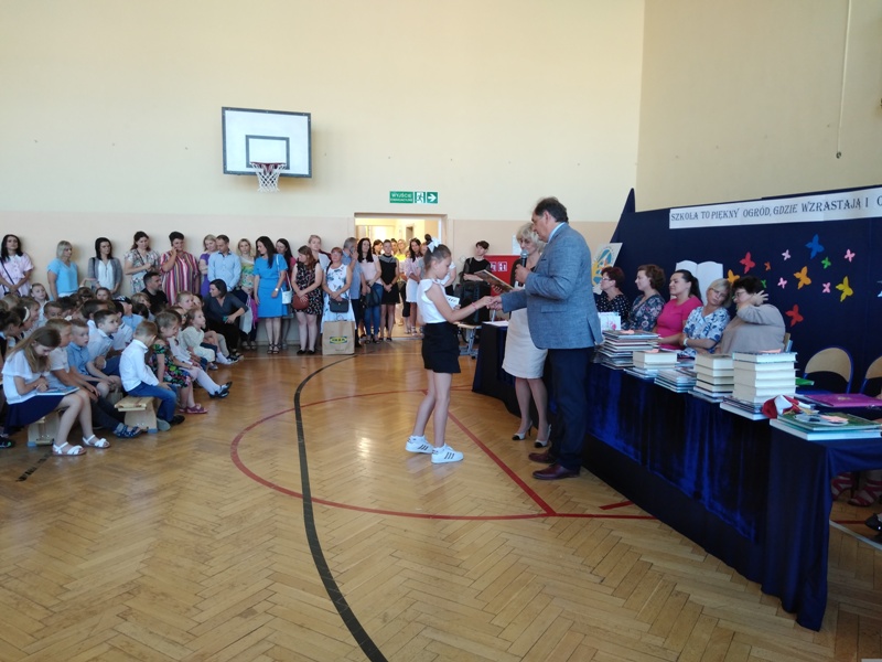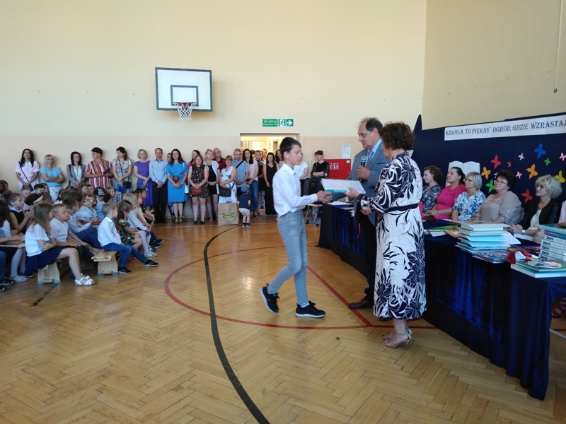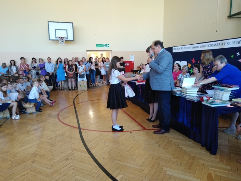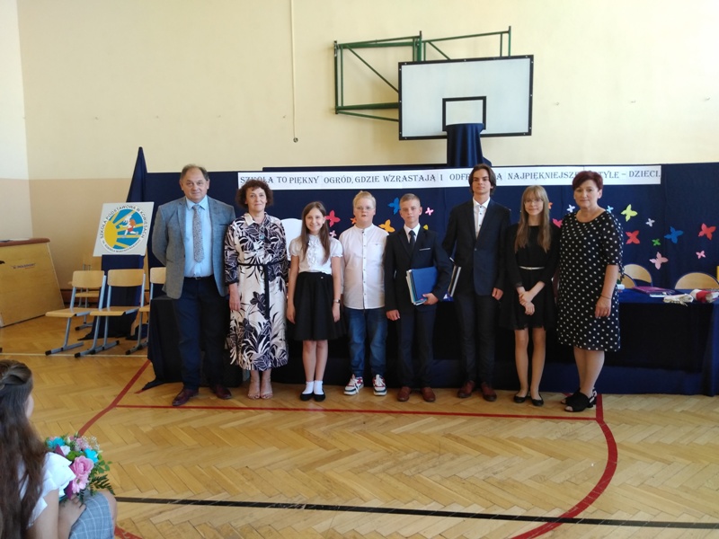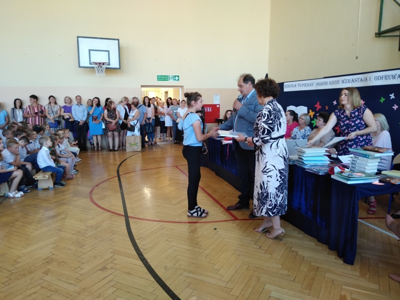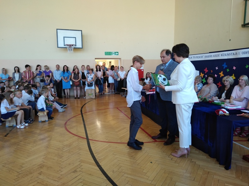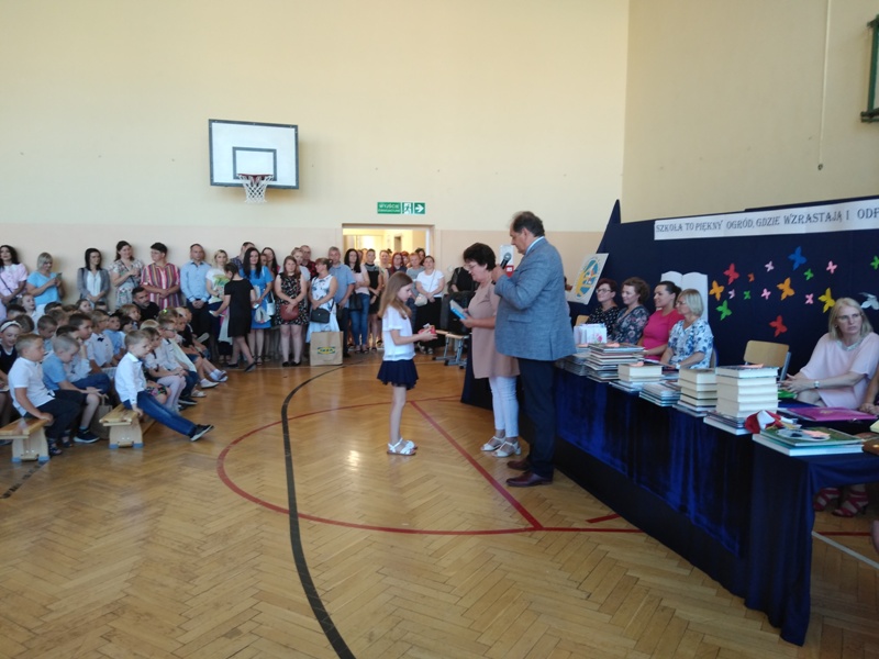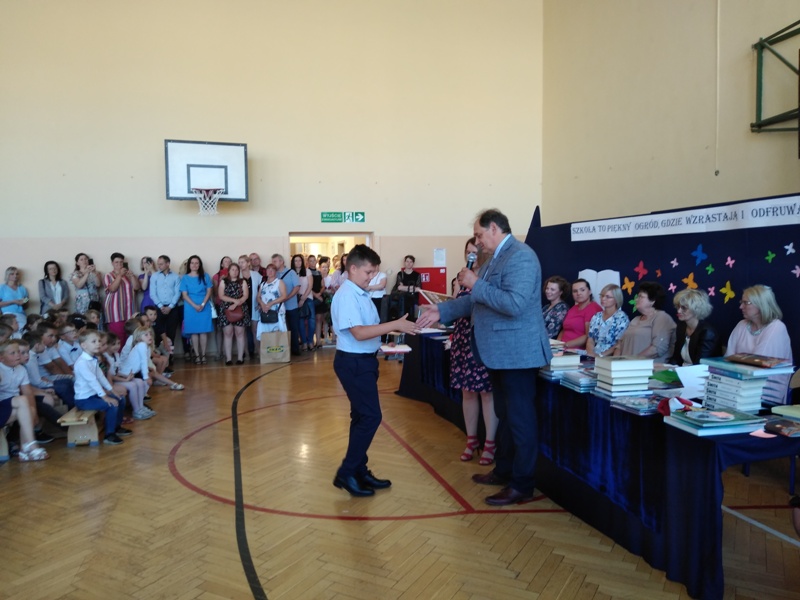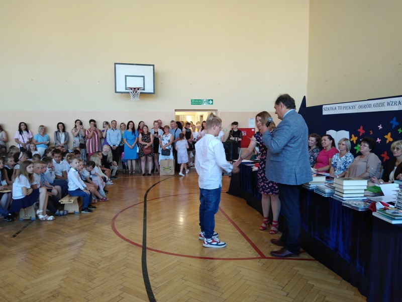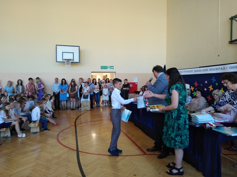 24 czerwca uroczyście zakończyliśmy rok szkolny 2021/2022. Pan dyrektor Marek Adamczyk wręczył świadectwa i nagrody ósmoklasistom oraz uczniom klas I-VII. Dyrektor podziękował wszystkim za miniony rok szkolny oraz gratulował nagrodzonym. Absolwenci pożegnali mury szkolne. Życzymy im, aby dostali się do upragnionych szkół, a w życiu osiągneli sukces i zrealizowali swoje najskrytsze marzenia. Uczniowie klas VII pożegnali swoich starszych kolegów wręczając każdemu z nich słonika na szczęście.