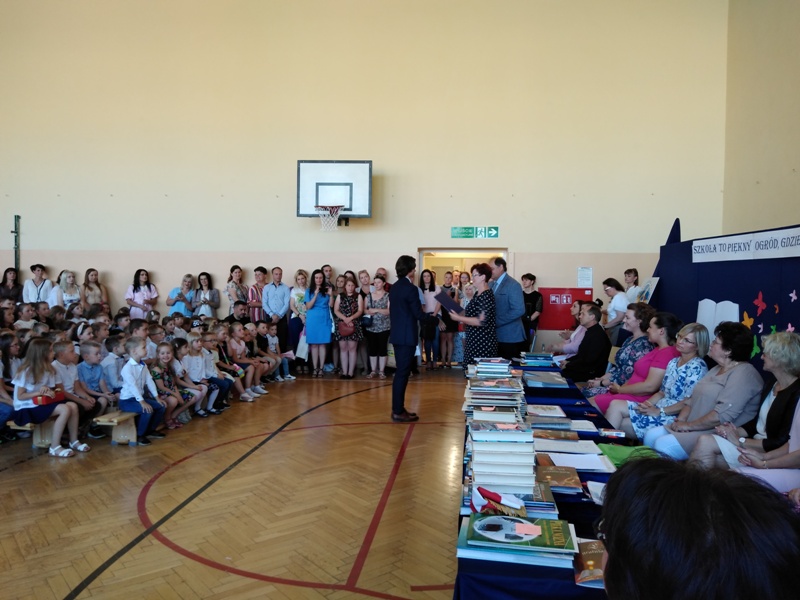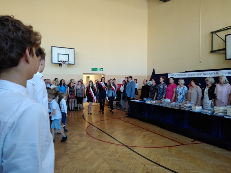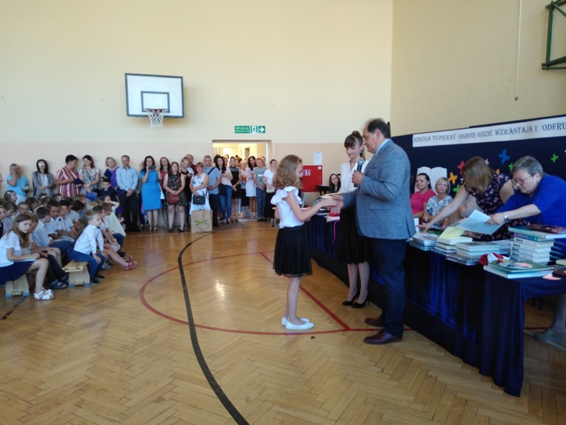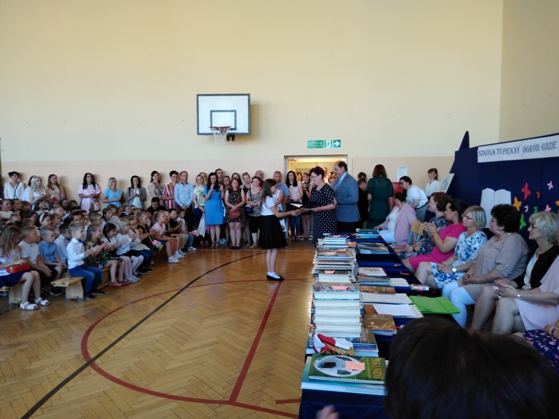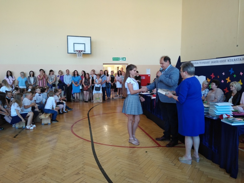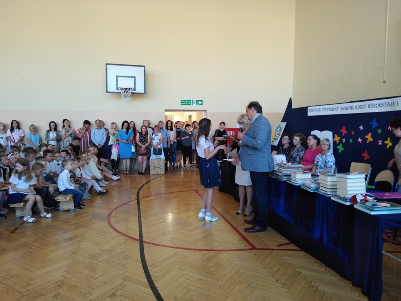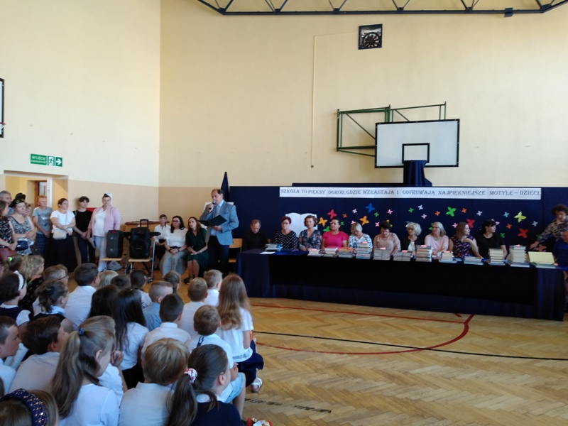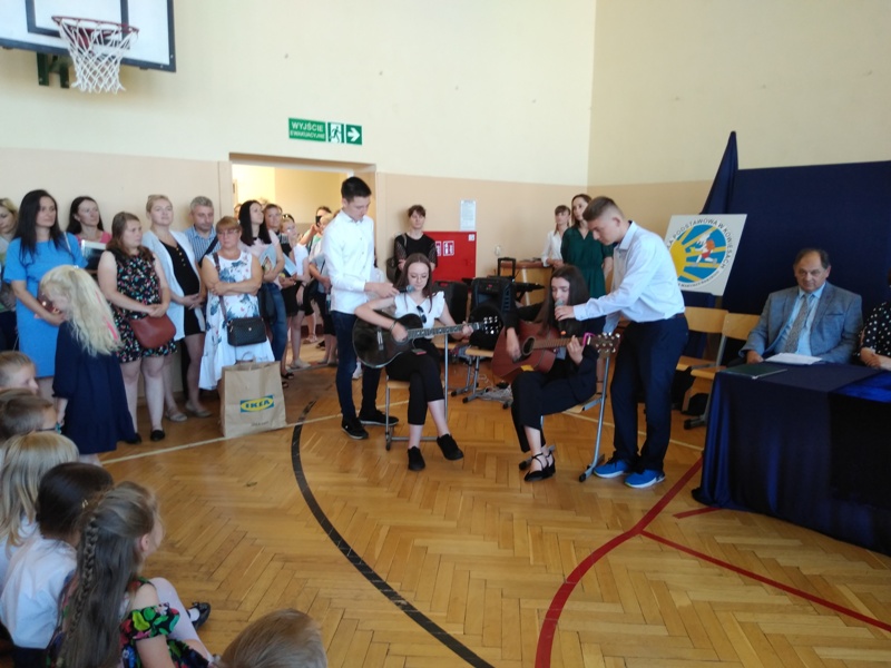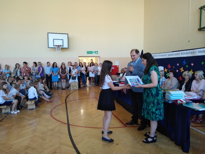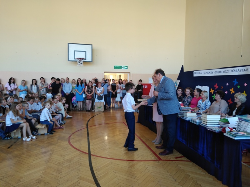 24 czerwca uroczyście zakończyliśmy rok szkolny 2021/2022. Pan dyrektor Marek Adamczyk wręczył świadectwa i nagrody ósmoklasistom oraz uczniom klas I-VII. Dyrektor podziękował wszystkim za miniony rok szkolny oraz gratulował nagrodzonym. Absolwenci pożegnali mury szkolne. Życzymy im, aby dostali się do upragnionych szkół, a w życiu osiągneli sukces i zrealizowali swoje najskrytsze marzenia. Uczniowie klas VII pożegnali swoich starszych kolegów wręczając każdemu z nich słonika na szczęście.