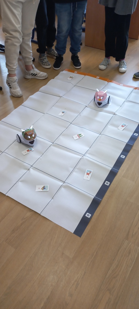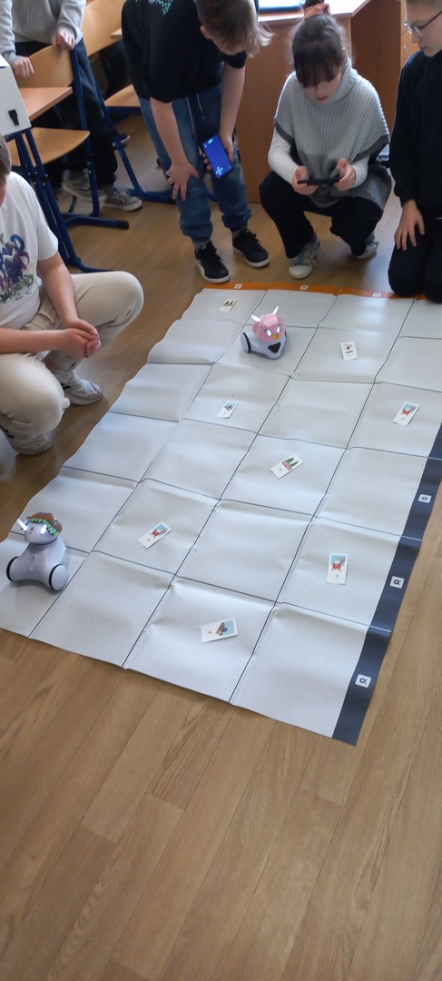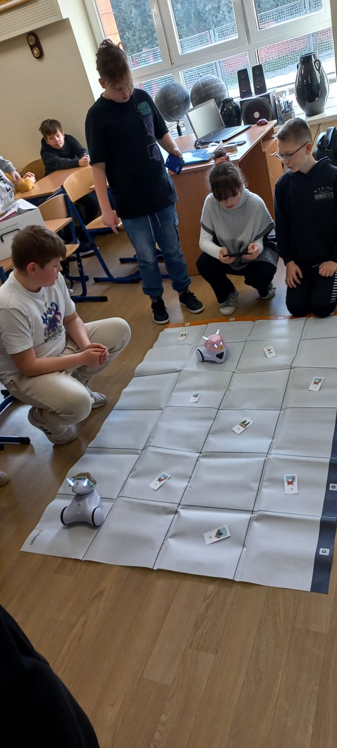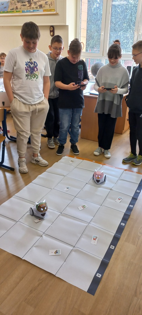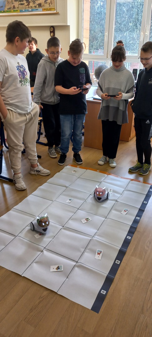W kwietniu uczniowie kl V w ramach zajęć rozwijających umiejętności polonistyczne zapoznali się z działaniem i funkcjonowaniem robotów Photon, zakupionych w ramach programu Laboratoria Przyszłości. Piątoklasiści przy pomocy nowoczesnego sprzętu przypominali i utrwalali wiadomości z określoną trudnością ortograficzną. Nauka połączona z zabawą bardzo spodobała się uczniom. Oprócz zasad ortograficznych uczniowie nabyli umiejętność sterowania robotem, do czego posłużyły im telefony z zainstalowaną aplikacją. Zabawy ortograficzne- „Ta sama głoska- różne litery” z wykorzystaniem Photon-ów okazały się świetnym pomysłem na powtórzenie i utrwalenie wiadomości w ciekawy sposób. Kierowanie przez uczniów robotem Photon na pole z właściwie zapisanym wyrazem, wpłynęło na ich większe zaangażowanie się w proces nauki.