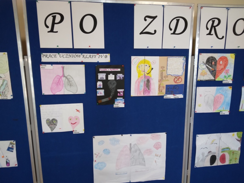 Uczniowie klas IVA i IVB wzięli udział w programie antytytoniowej edukacji zdrowotnej, opracowanym przez Główny Inspektorat Sanitarny- "Bieg po zdrowie". Celem programu jest uświadomienie młodym osobom negatywnych skutków palenia papierosów, zwiększenie wiedzy na temat zdrowia. Podsumowaniem projektu było przygotowanie gazetki szkolnej na temat szkodliwości palenia nikotyny. Poniżej galeria prac naszych uczniów.