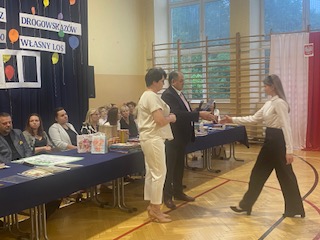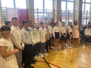 W tym wyjątkowym dniu nastąpiło również podsumowanie całorocznego projektu ekologicznego pt. „Ekologiczni sąsiedzi- przygoda z Feniksem”, który wygrali uczniowie kl V pod opieką swojej wychowawczyni pani Kamili Szczechowicz, zdobywając tytuł EKO KLASY. Symboliczny czek w wysokości 5000 zł na ręce piątoklasistów złożyli prezes firmy Feniks- Recykling pan Andrzej Kopeć wraz z wiceprezesem- panem Piotrem Kowalczykiem.