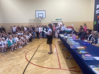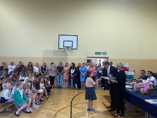 23 czerwca uroczyście zakończyliśmy rok szkolny 2022/2023. Pan Dyrektor Marek Adamczyk przywitał zaproszonych gości, wśród których znaleźli się: wójt gminy Kowiesy – pan Jarosław Pepka, ksiądz proboszcz Krzysztof Majcher, pani Anna Modzelewska- manager ds. marketingu i PR firmy Sienkiewicz Mat- Bud Sp. z o.o oraz prezes i wiceprezes firmy Feniks- Recykling- pan Andrzej Kopeć i Piotr Kowalczyk. Szczególnie ciepło zostali przywitani wszyscy uczniowie, absolwenci naszej szkoły oraz nauczyciele i rodzice.