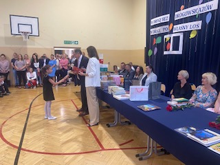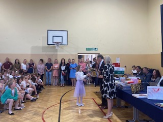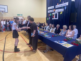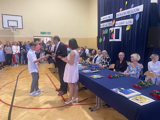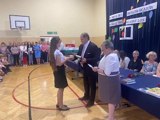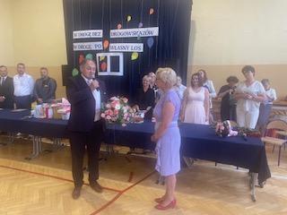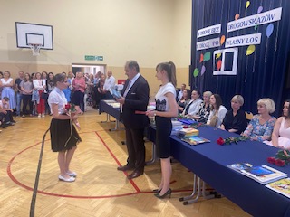 W podsumowaniu uroczystości zakończenia roku- Pan Dyrektor Marek Adamczyk pogratulował uczniom wyników i podziękował rodzicom za zaangażowanie w życie szkoły. Nie zabrakło też wzruszeń, gdy w imieniu całej społeczności szkolnej podziękował za wieloletnią pracę, profesjonalizm, serce i życiową mądrość, odchodzącej na emeryturę- pani Irenie Stańczak.