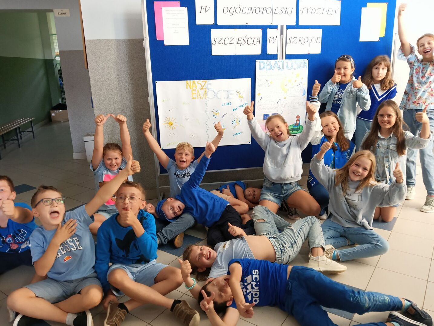 W dniach 18- 24 września bieżącego roku nasza szkoła po raz pierwszy włączyła się w obchody IV Ogólnopolskiego Tygodnia Szczęścia w Szkole. Samo hasło tegorocznej edycji: Z OPTYMIZMEM I NADZIEJĄ!- już sprawiło, że na sercu zrobiło się jakoś lżej i dużo milej. Zainaugurowanie wydarzeń uczniowie klasy VI wraz ze swoją wychowawczynią panią Kamilą Szczechowicz rozpoczęli od refleksyjnych i napawających optymizmem przemyśleń, którym przyświecała myśl amerykańskiego psychologa Martina Seligmana