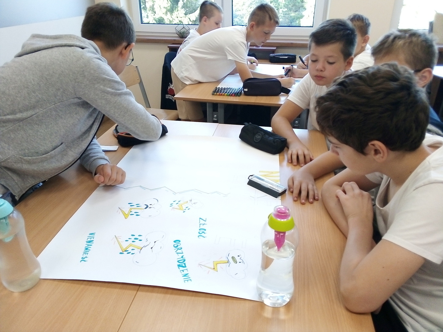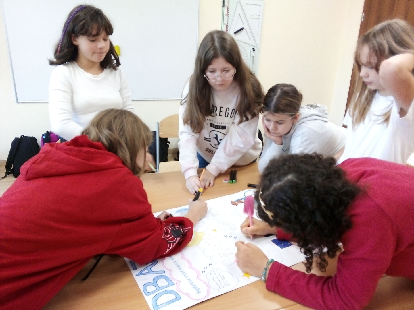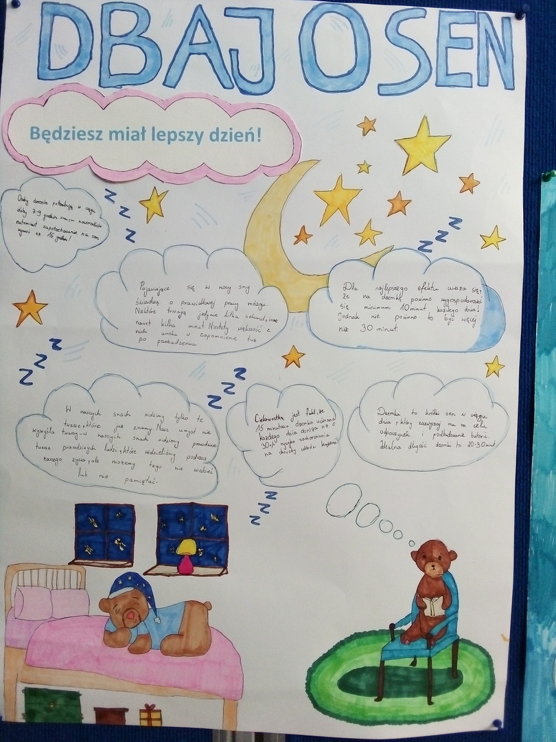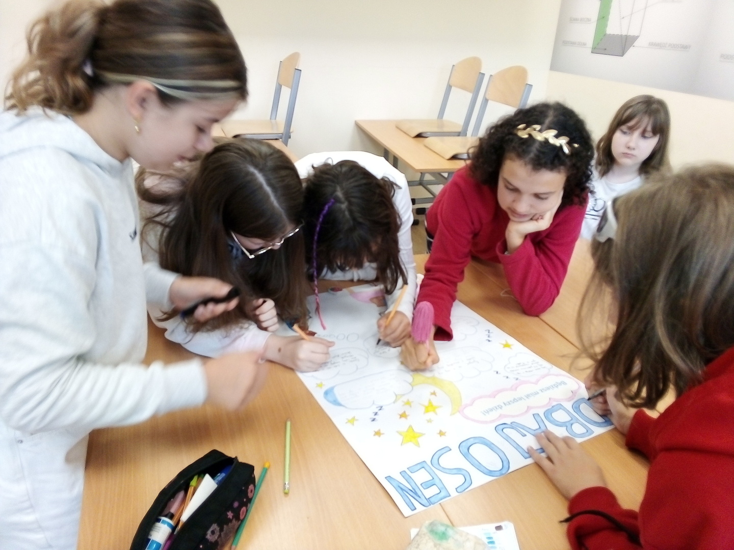„Optymistę spotyka w życiu tyle samo niepowodzeń i tragedii co pesymistę, ale optymista znosi to lepiej” – słowa te stały się punktem wyjścia do rozmowy o szczęściu i dobrostanie oraz ich związku z efektami kształcenia. Szóstoklasiści w ramach świętowania niezwykle chętnie podjęli tematykę swoich talentów i mocnych stron. Dzielili się swoimi pasjami, o których mówili z wielkim zaangażowaniem i prawdziwą radością. W trakcie świętowania kl VI miała okazję uczestniczyć także w „Festiwalu Emocji”- i w tym temacie można było liczyć na szczere odpowiedzi młodzieży, która wypowiadała się zarówno o tych emocjach przyjemnych- dodających „skrzydeł”, jak i nieprzyjemnych, bo i takie zdarzają się w życiu każdego człowieka. I tu także nie zabrakło głębszych refleksji na temat radzenia sobie z naszymi emocjami. Wiele uśmiechu na twarzy uczniów wywołał kolejny podjęty temat, a mianowicie „Święto Drzemki i Dobrego Snu”. Podczas realizacji tej aktywności okazało się, że wśród szóstoklasistów jest mnóstwo „śpiochów”, którzy ucieszyli się na wieść, że dobry sen wydłuża życie. Integracja uczniów klasy VI była widoczna w piątkowym świętowaniu „Festiwalu Kolorów”. Na ten wyjątkowy dzień szóstoklasiści postanowili wybrać, jako dominujący kolor swojego ubioru- kolor biały. Psychologiczna siła bieli symbolizuje zdrowie, młodość, otwartość i dobre intencje. Biel harmonizuje i tonizuje, przywraca równowagę w organizmie, i tacy są właśnie szóstoklasiści- młodzi, zdrowi, otwarci, potrafiący zachować właściwą równowagę. Podczas obchodów tego niezwykłego tygodnia uczniowie kl VI wykonali plakaty dotyczące podejmowanych tematów, które można obejrzeć