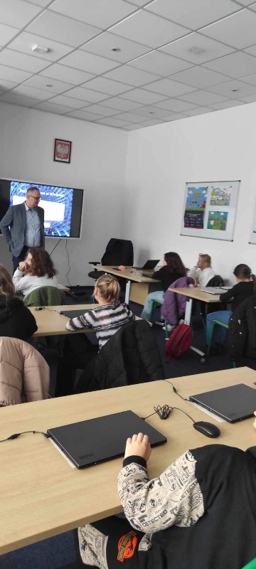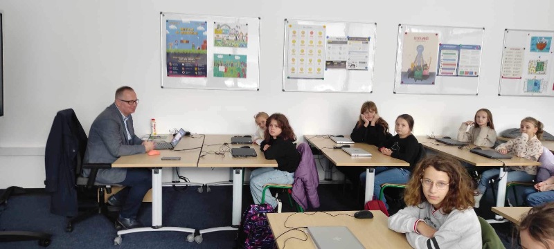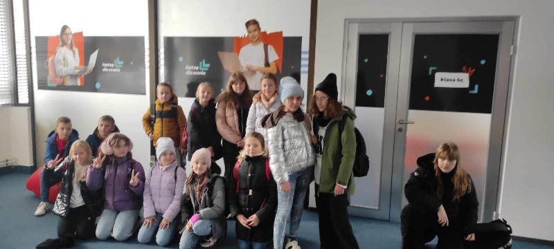 Dnia 15 listopada 2023 roku uczniowie klasy 4 w ramach programu ,,Laptop dla ucznia" wzięli udział w lekcji informatyki ,,Dlaczego Windows 11 i Minecraft Education to taka dobrana para?", która została przeprowadzona w Ministerstwie Cyfryzacji w Warszawie.